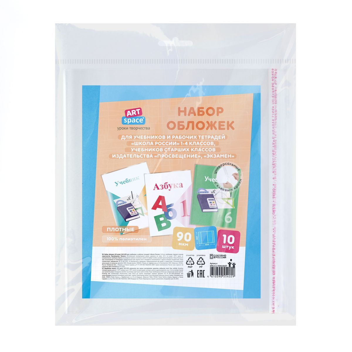 Набор обложек (10шт.) 265*450 для учеб. и раб.тетр "Школа России"1-4кл, учебн.стар. кл. издат.Просвещение,Экзамен,ПЭ 90мкм, унив. с кл. краем,ArtSpace