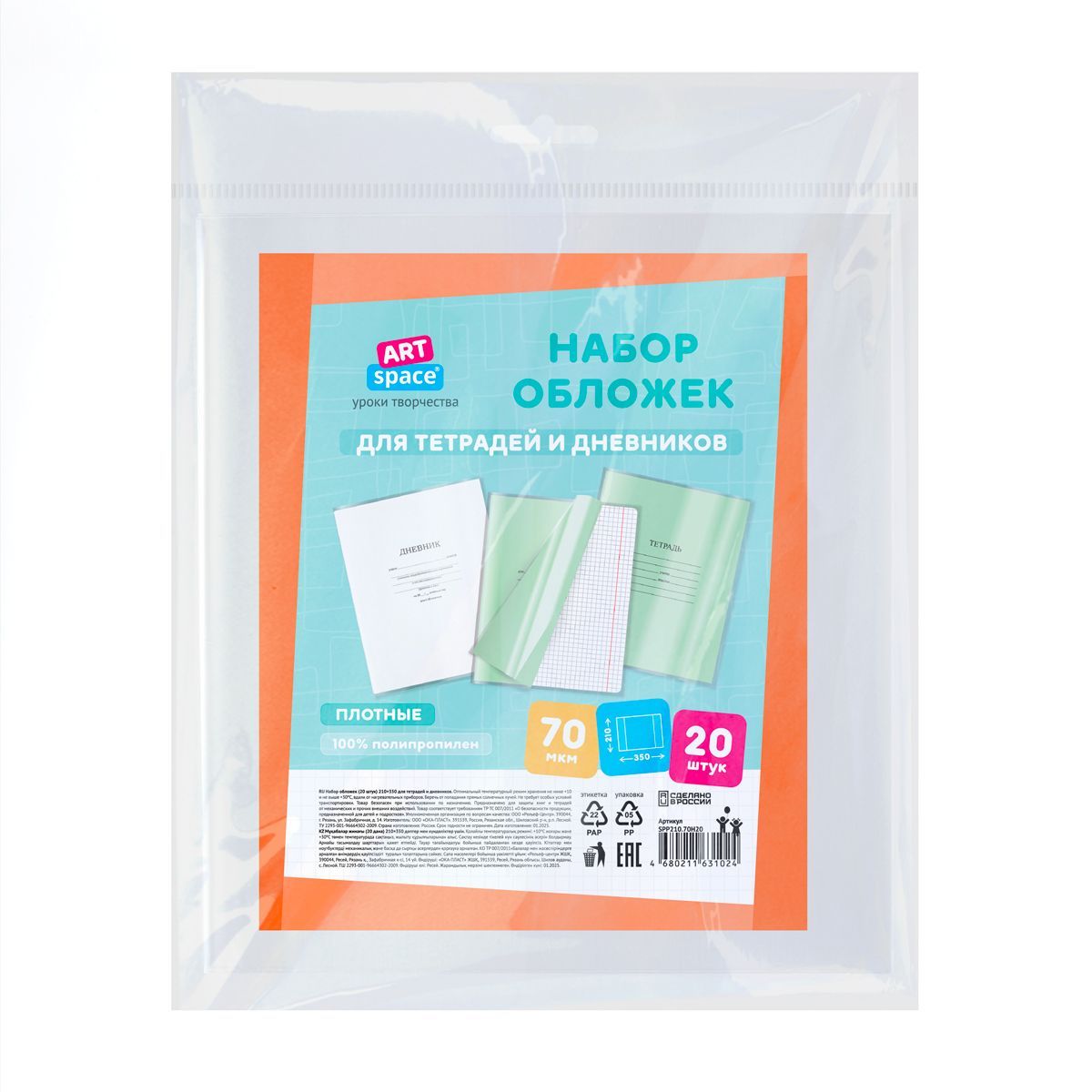 Набор обложек (20шт.) 210*350 для тетрадей и дневников, ПП 70мкм, ArtSpace