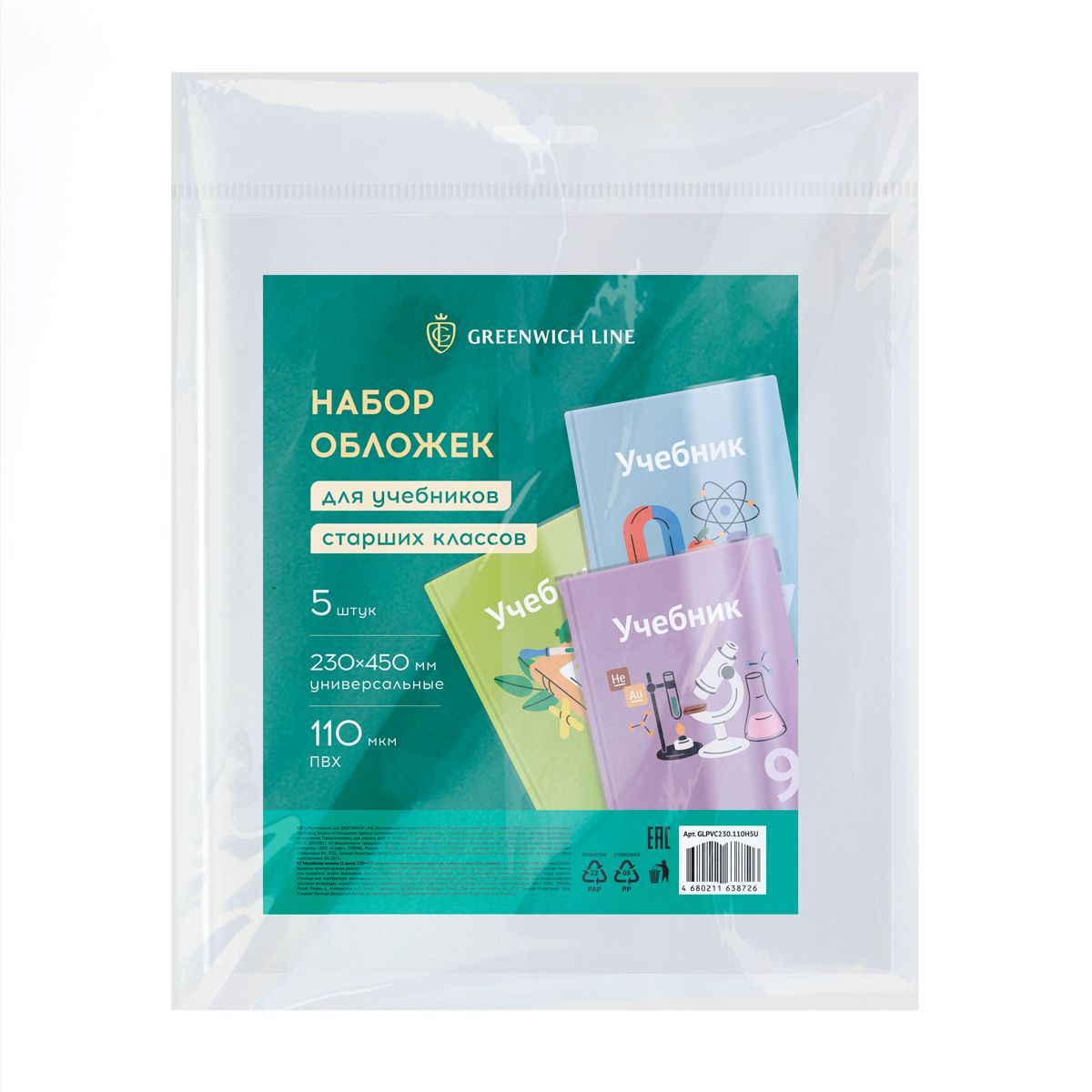 Набор обложек (5шт.) 230*450 для учебников старших классов, ПВХ 110мкм, универсальные, Greenwich Line