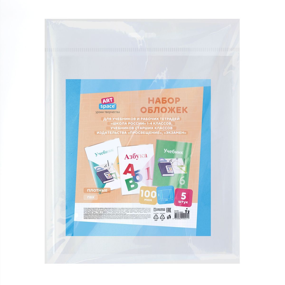 Набор обложек (5шт.) 265*415 для учебников Петерсон/Моро ч.1,3/Кап. солнца/Плешаков, ArtSpace, ПВХ 100мкм
