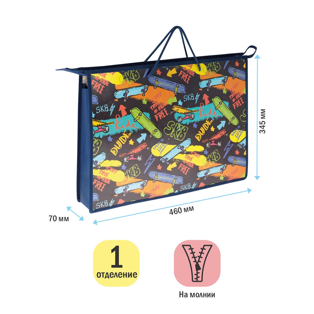 Папка для чертежей и рисунков А3 ArtSpace "Skate", пластик, 70мм, на молнии