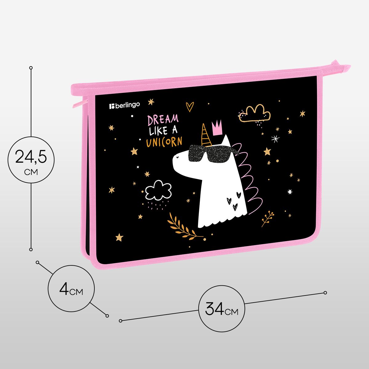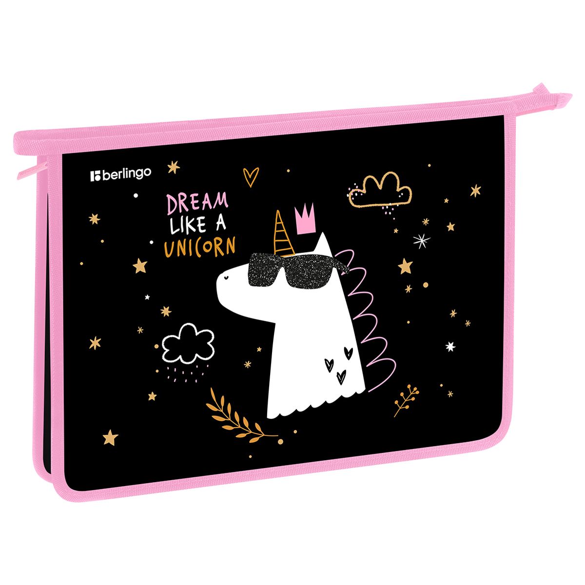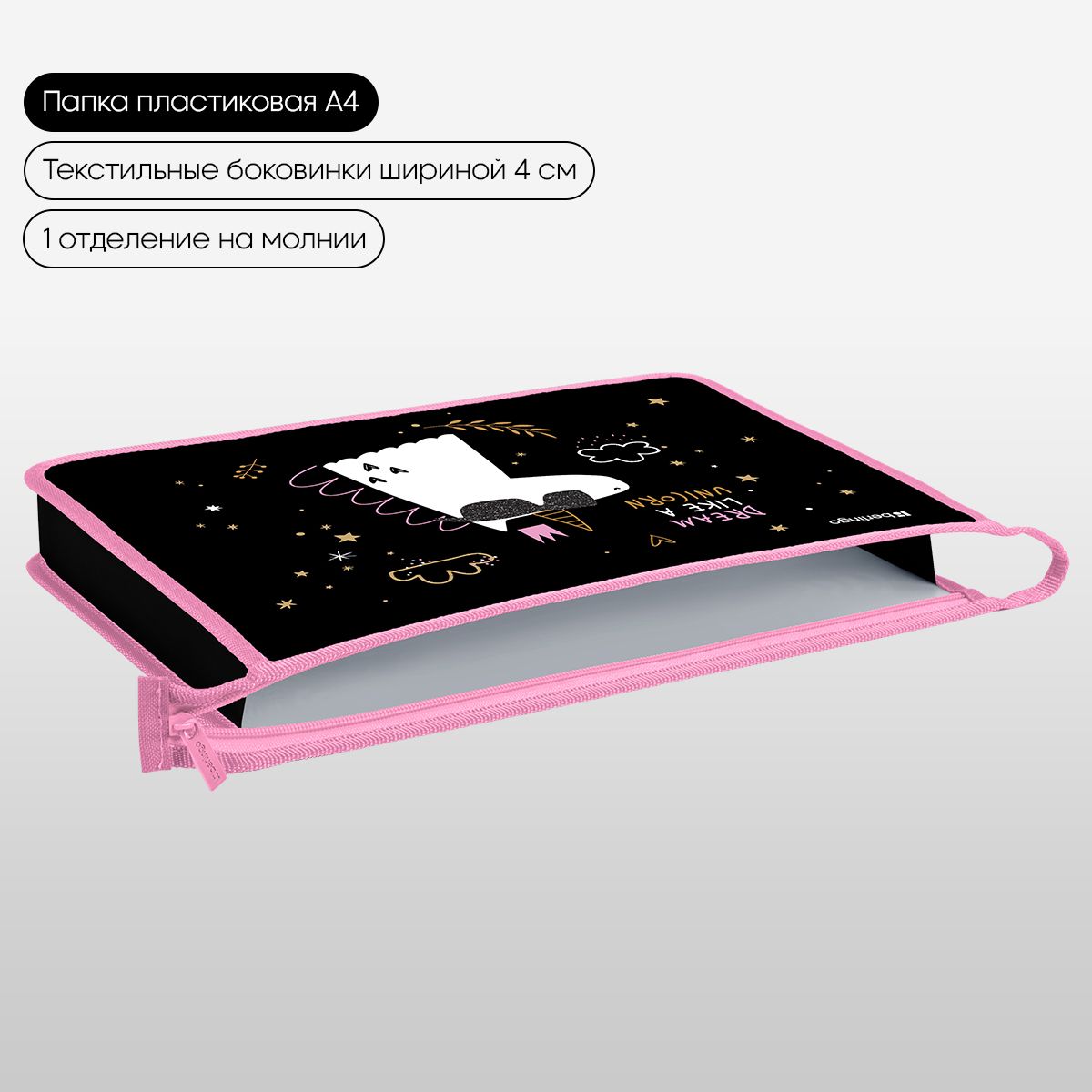 Папка для тетрадей 1 отделение, А4 Berlingo "Dream Like A Unicorn", 340*245*40 мм, пластик, на молнии