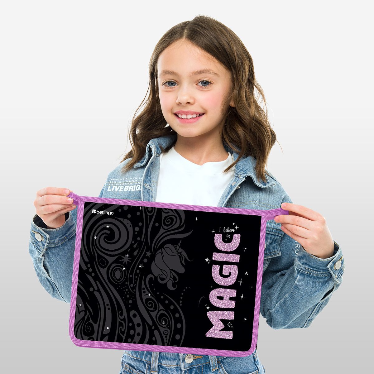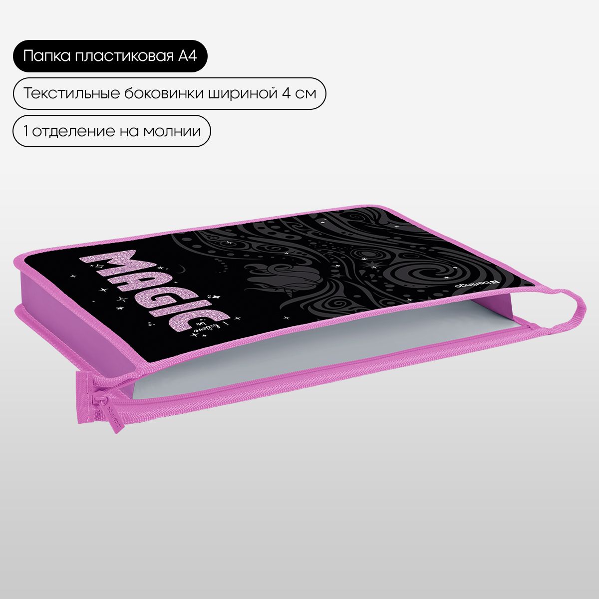 Папка для тетрадей 1 отделение, А4 Berlingo "Purple Magic", 340*245*40 мм, пластик, на молнии