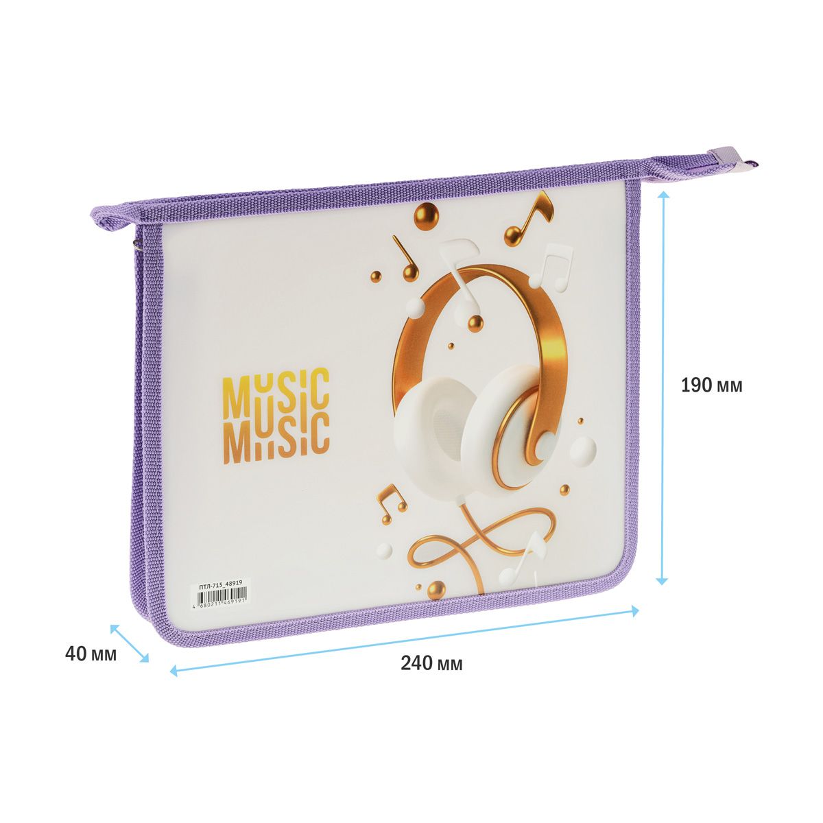 Папка для тетрадей 1 отделение, А5, ArtSpace "My music", 240*190*40мм, пластик, на молнии