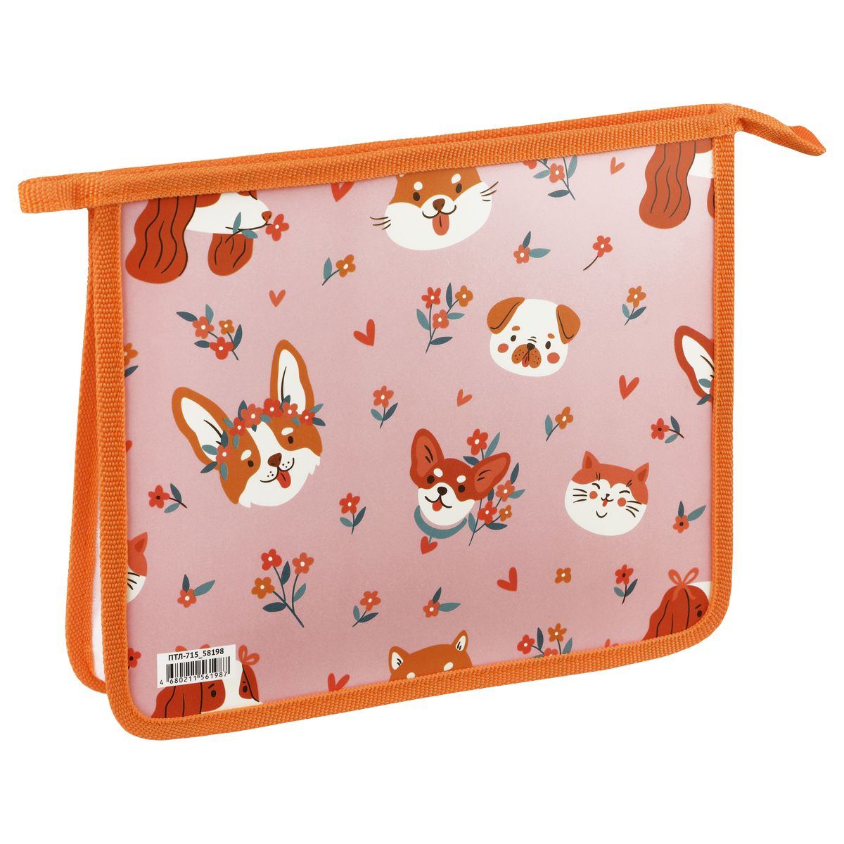 Папка для тетрадей 1 отделение, А5, ArtSpace "Pets", пластик, на молнии