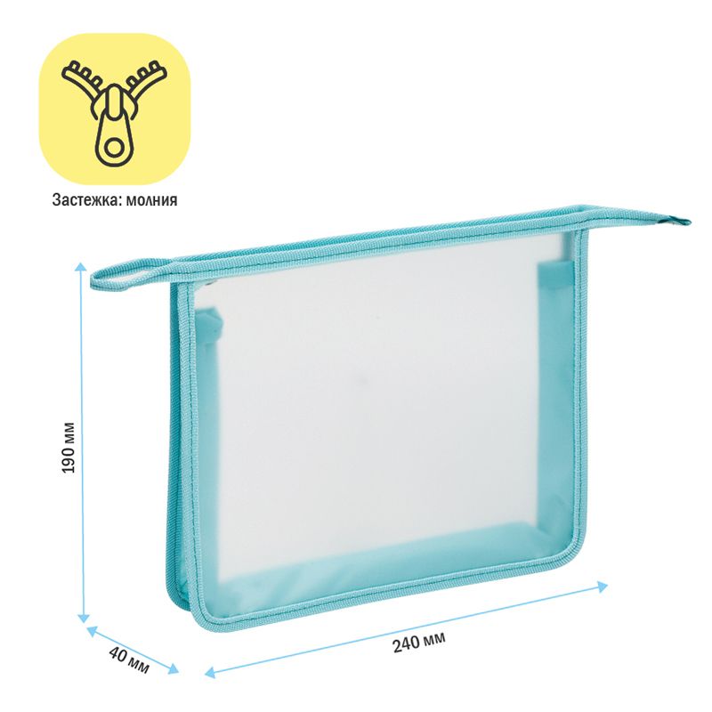 Папка для тетрадей 1 отделение А5 ArtSpace, прозрачная/бирюзовый, пластик, на молнии