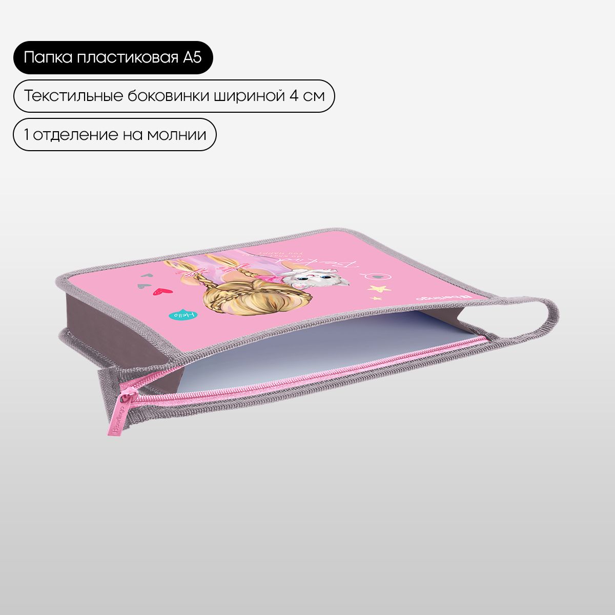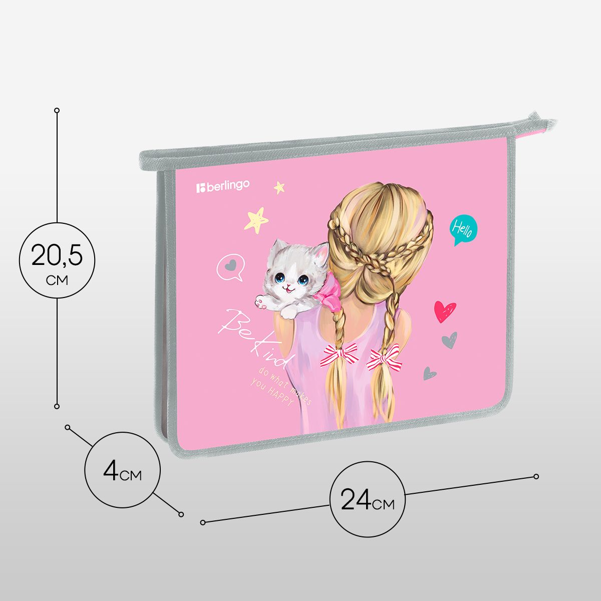 Папка для тетрадей 1 отделение, А5 Berlingo "Be Kind!", 240*205*40 мм, пластик, на молнии