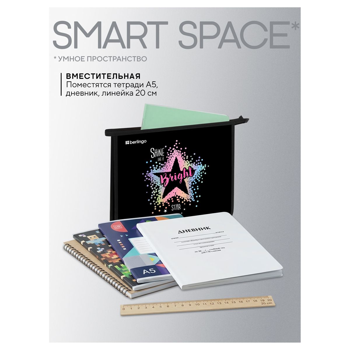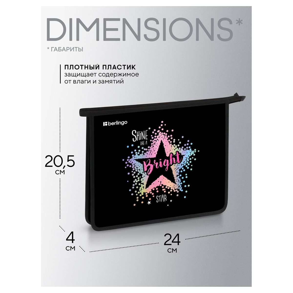 Папка для тетрадей 1 отделение, А5 Berlingo "Bright star", 240*205*40мм, пластик, на молнии