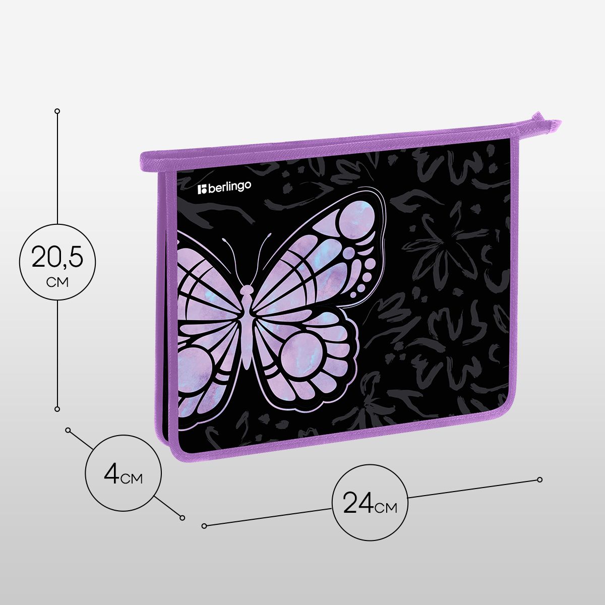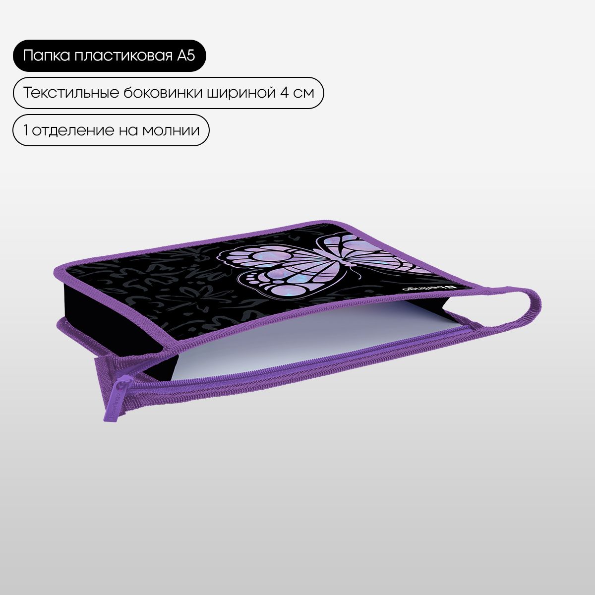 Папка для тетрадей 1 отделение, А5 Berlingo "Butterfly Effect", 240*205*40 мм, пластик, на молнии
