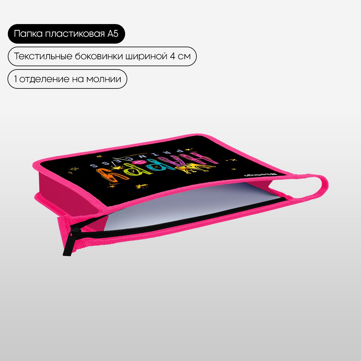 Папка для тетрадей 1 отделение, А5 Berlingo "Candy Princess", 240*205*40 мм, пластик, на молнии