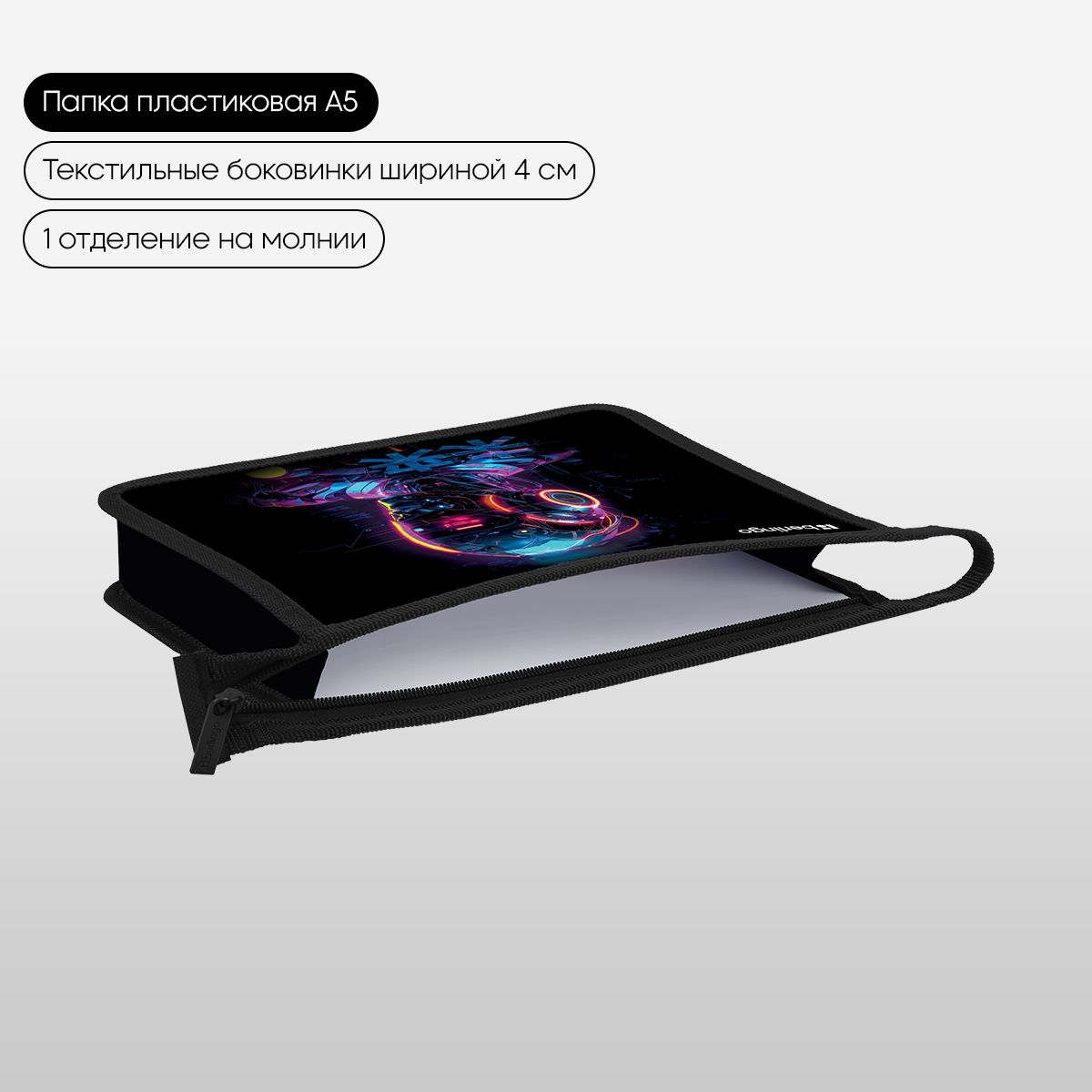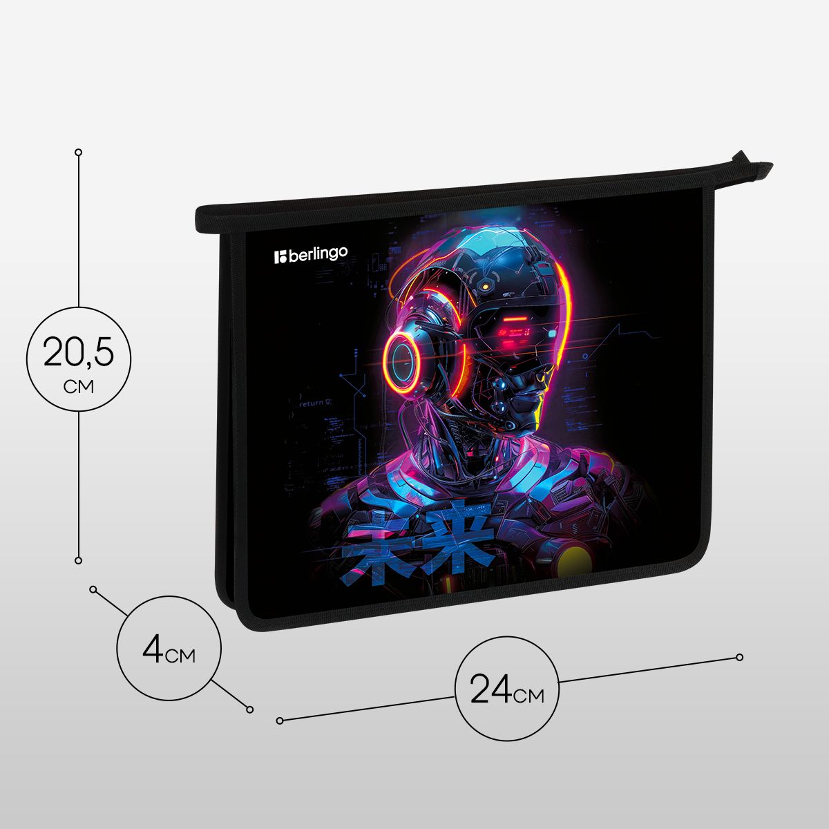 Папка для тетрадей 1 отделение, А5 Berlingo "Cyberpunk", 240*205*40 мм, пластик, на молнии
