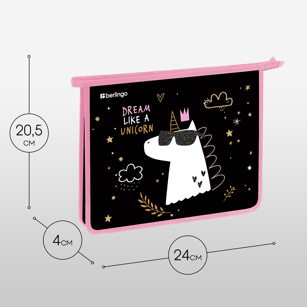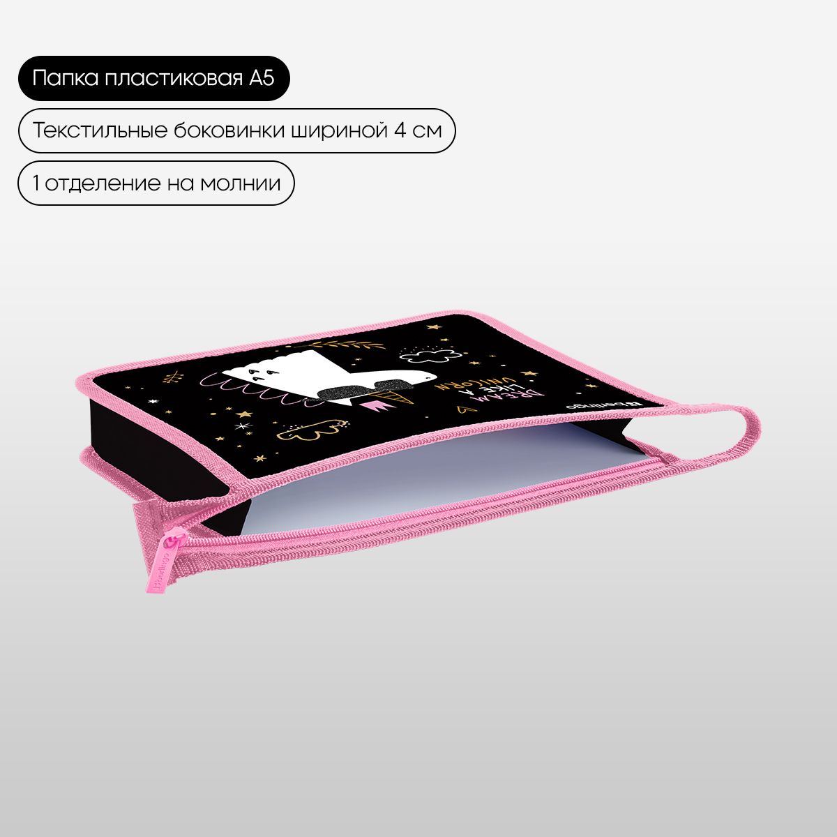 Папка для тетрадей 1 отделение, А5 Berlingo "Dream Like A Unicorn", 240*205*40 мм, пластик, на молнии