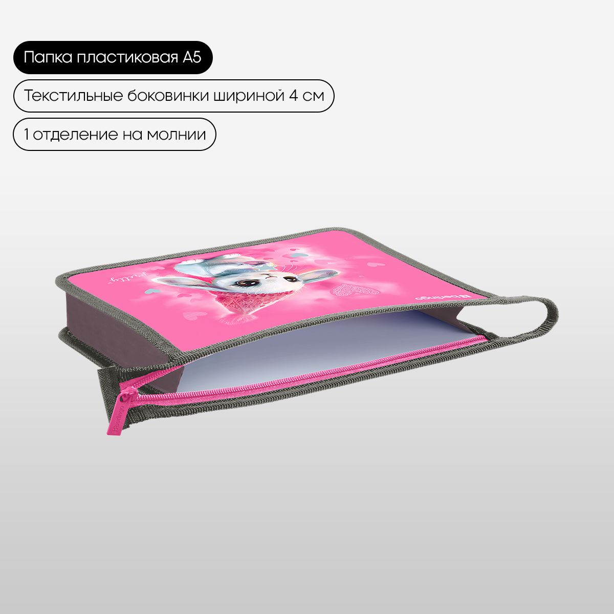 Папка для тетрадей 1 отделение, А5 Berlingo "Dreamy Bunny", 240*205*40 мм, пластик, на молнии
