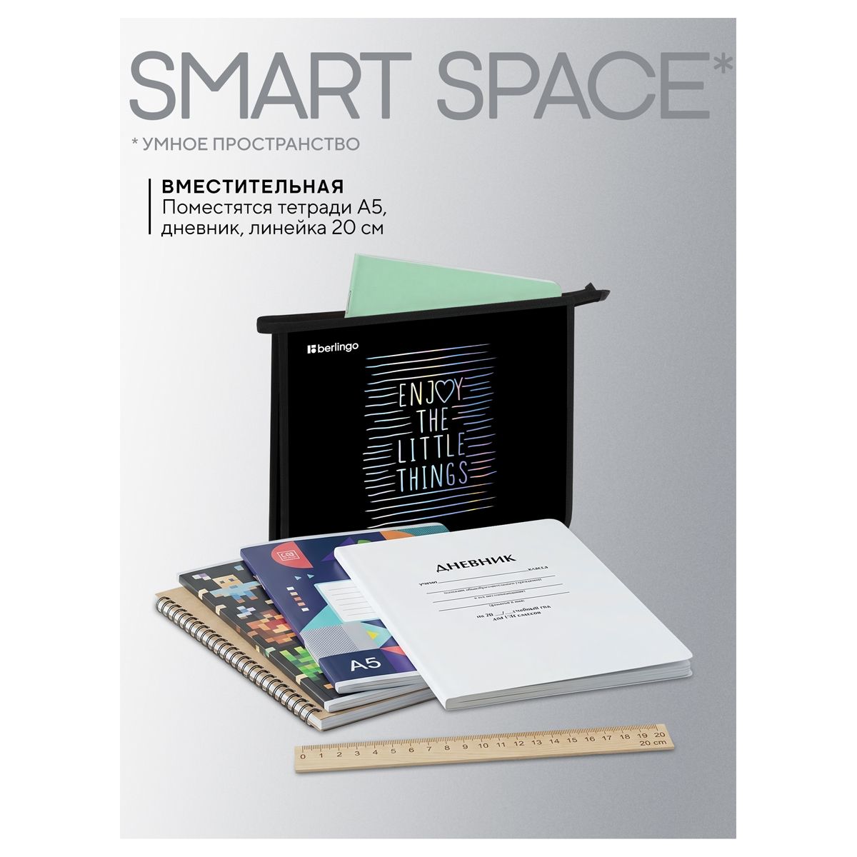 Папка для тетрадей 1 отделение, А5 Berlingo "Enjoy the little things", 240*205*40мм, пластик, на молнии