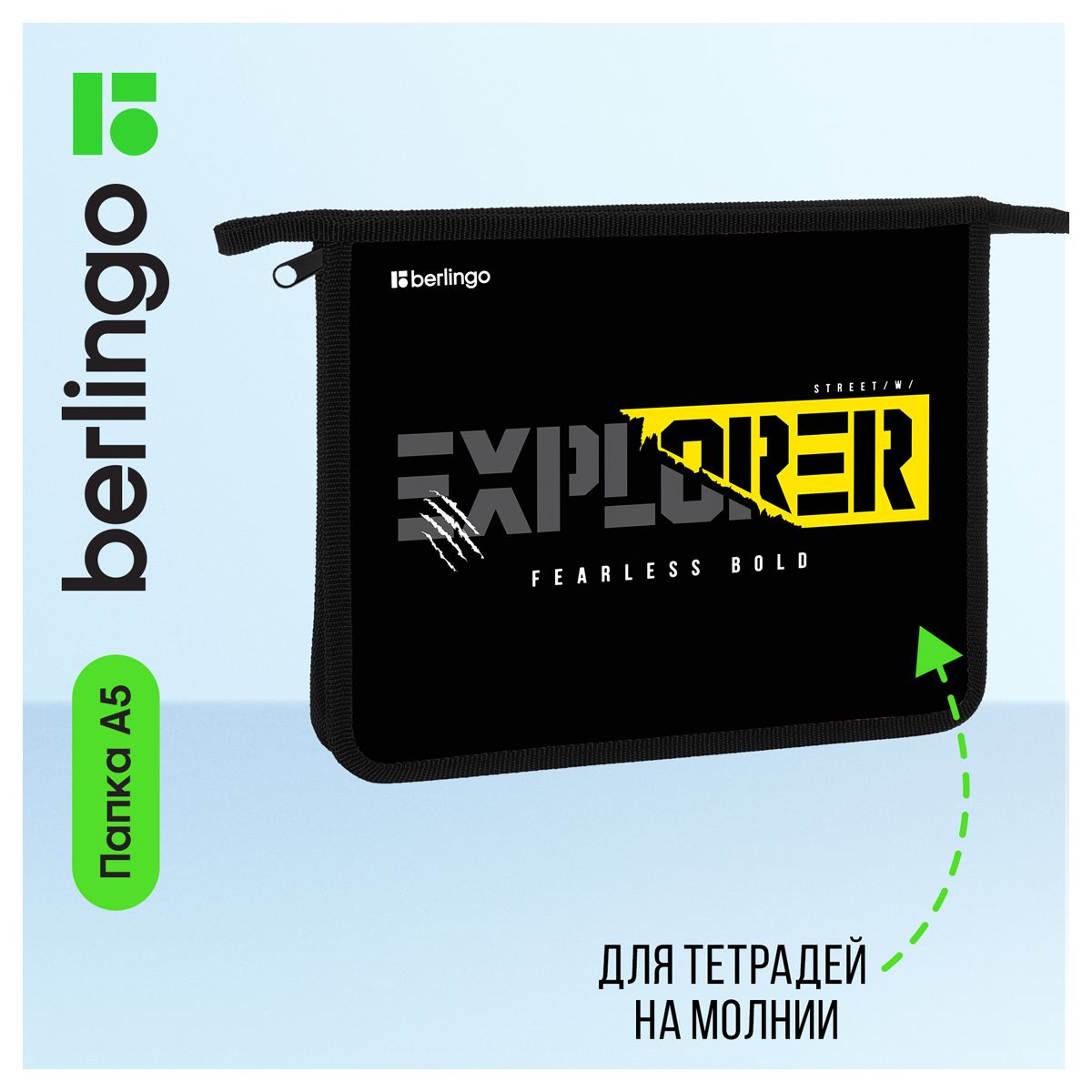 Папка для тетрадей 1 отделение, А5 Berlingo "Explorer", 240*205*40мм, пластик, на молнии