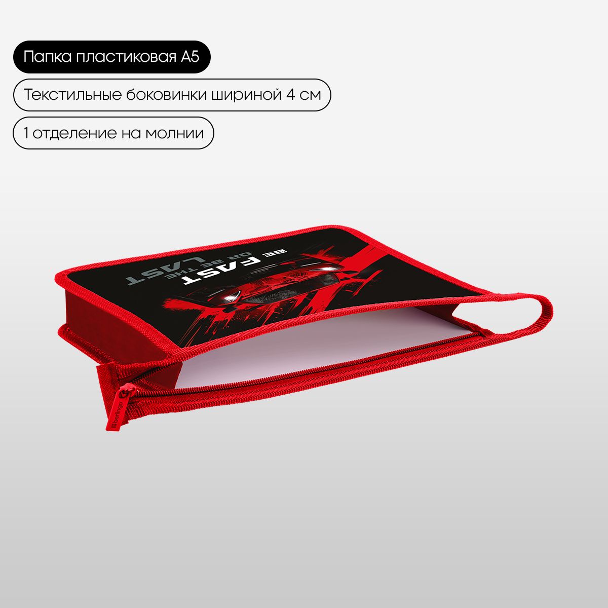 Папка для тетрадей 1 отделение, А5 Berlingo "Fast Track", 240*205*40 мм, пластик, на молнии