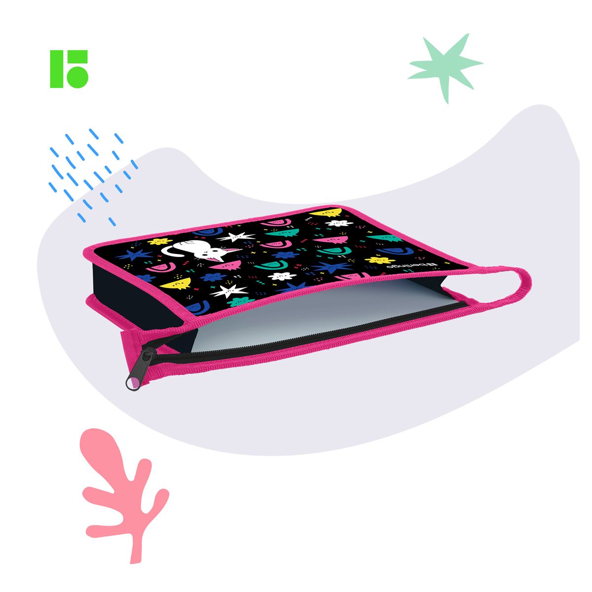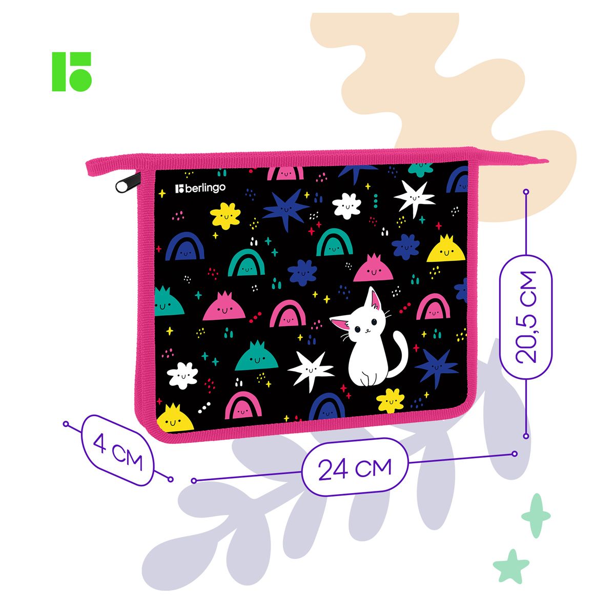 Папка для тетрадей 1 отделение, А5 Berlingo "Funny colors", 240*205*40мм, пластик, на молнии