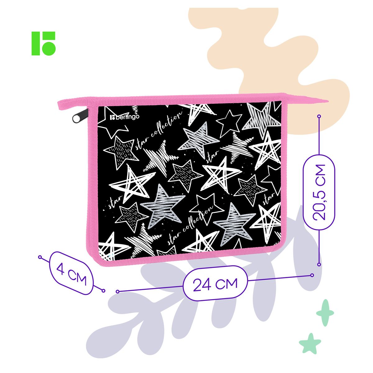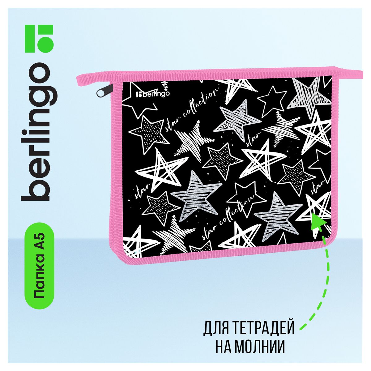 Папка для тетрадей 1 отделение, А5 Berlingo "Glossy stars", 240*205*40мм, пластик, на молнии
