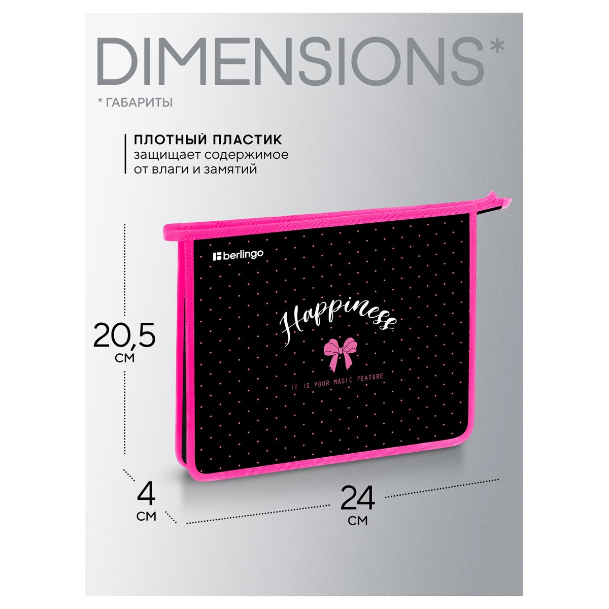 Папка для тетрадей 1 отделение, А5 Berlingo "Happiness", 240*205*40мм, пластик, на молнии