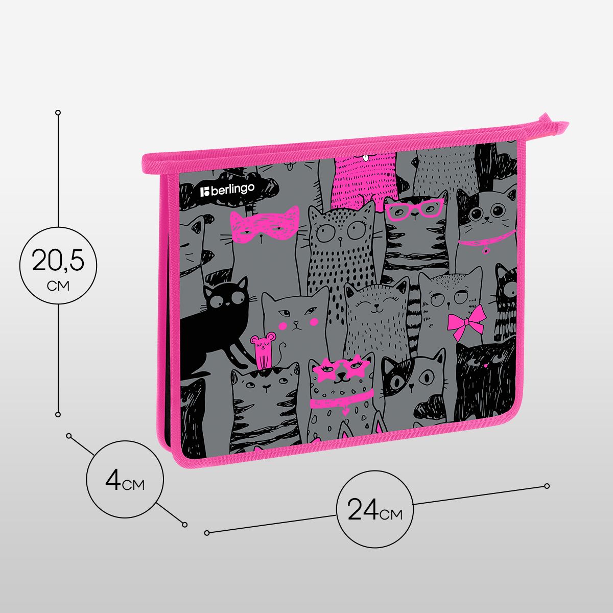 Папка для тетрадей 1 отделение, А5 Berlingo "Happy Cats", 240*205*40 мм, пластик, на молнии