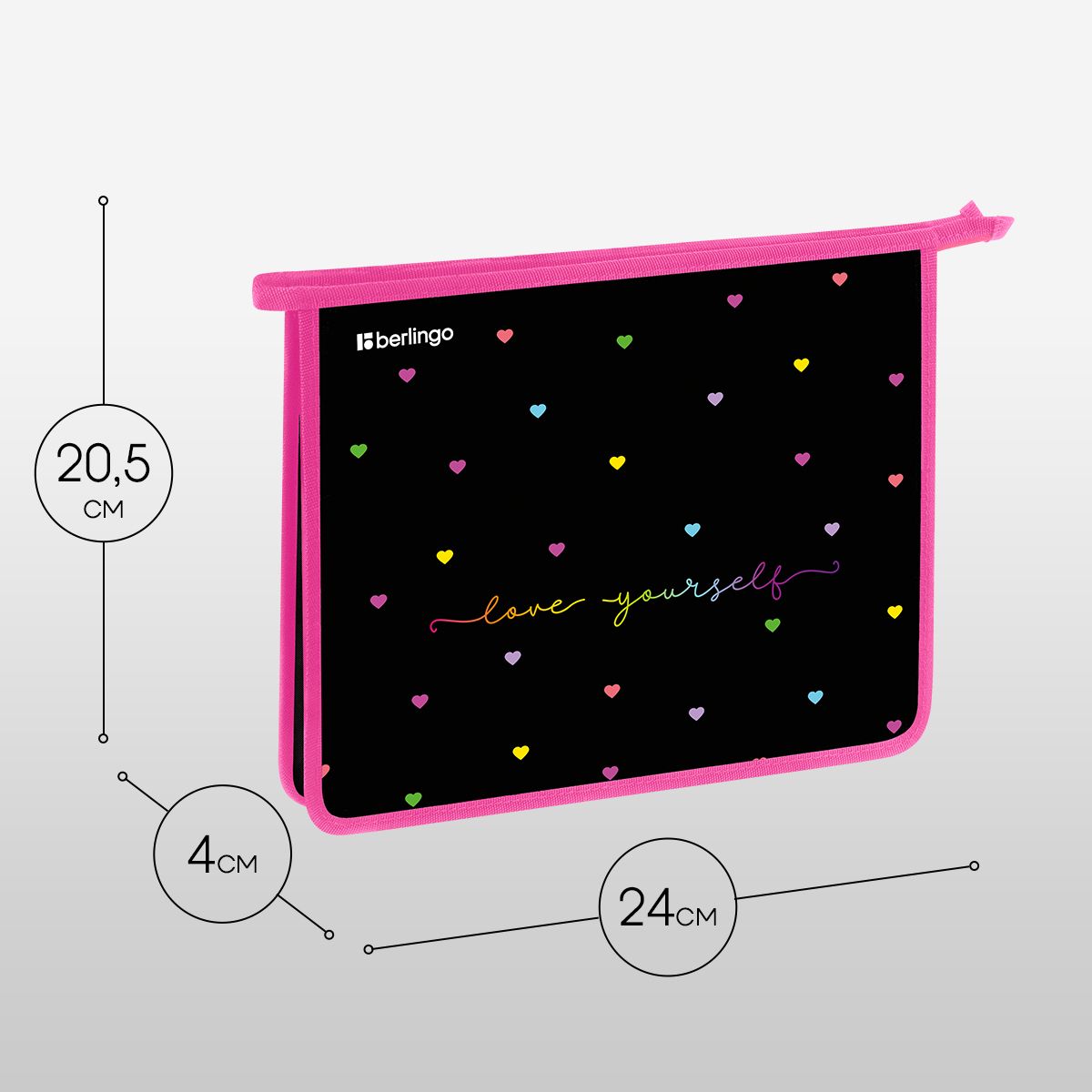Папка для тетрадей 1 отделение, А5 Berlingo "Love Yourself", 240*205*40 мм, пластик, на молнии