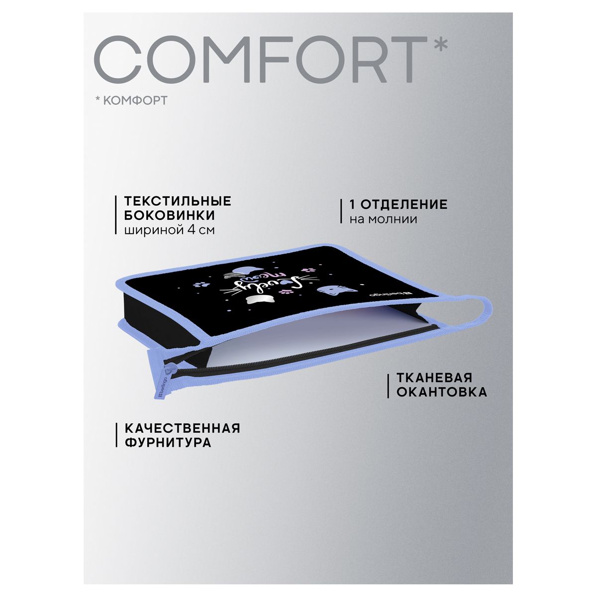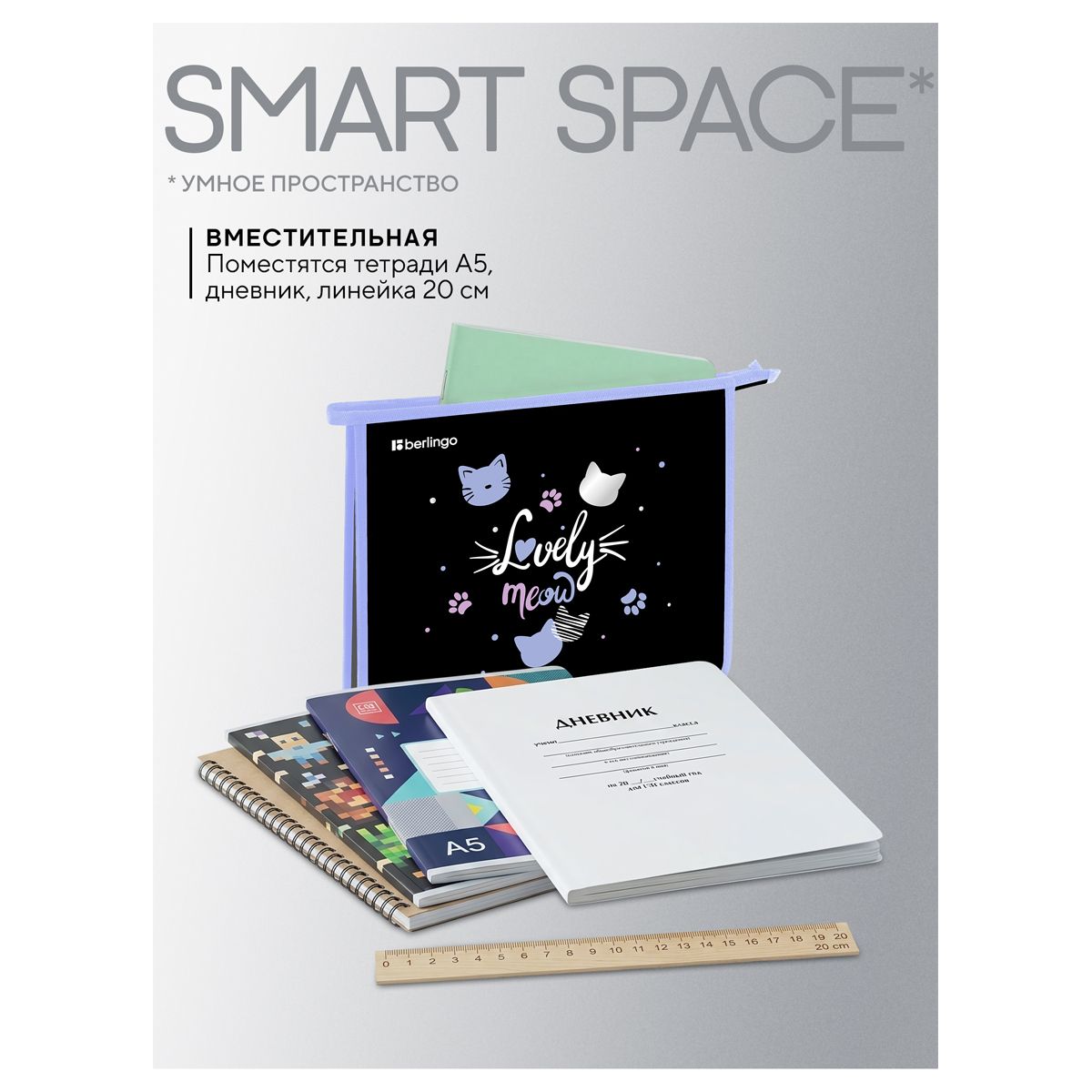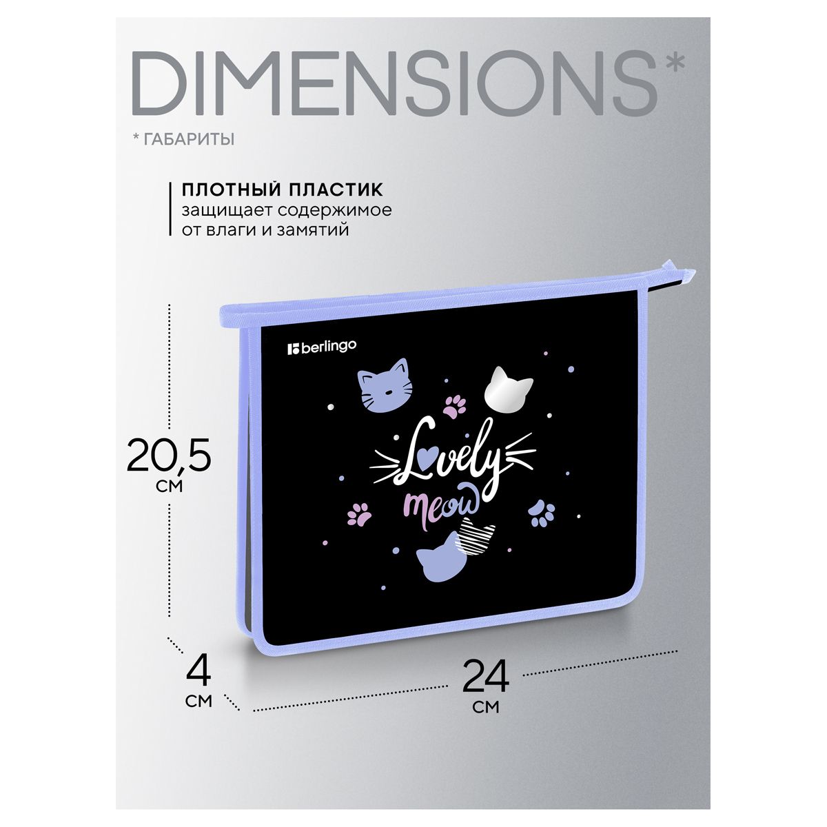 Папка для тетрадей 1 отделение, А5 Berlingo "Lovely Meow", 240*205*40мм, пластик, на молнии