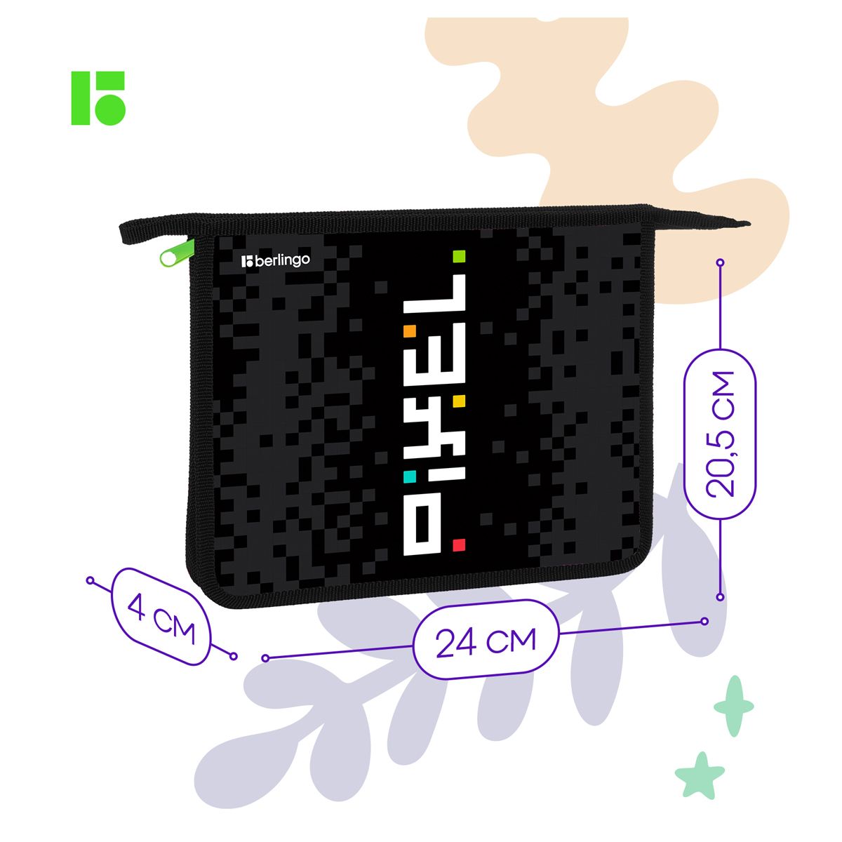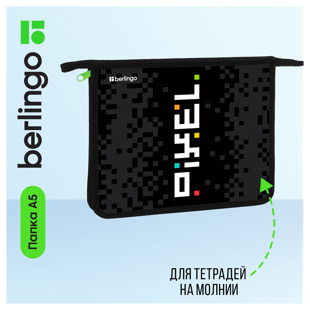 Папка для тетрадей 1 отделение, А5 Berlingo "Pixel style", 240*205*40мм, пластик, на молнии