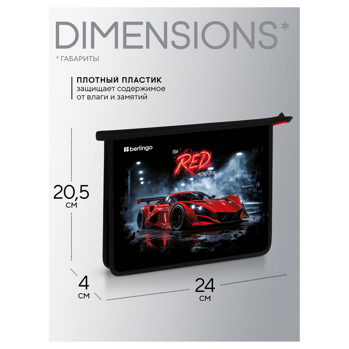 Папка для тетрадей 1 отделение, А5 Berlingo "Red Monster", 240*205*40мм, пластик, на молнии