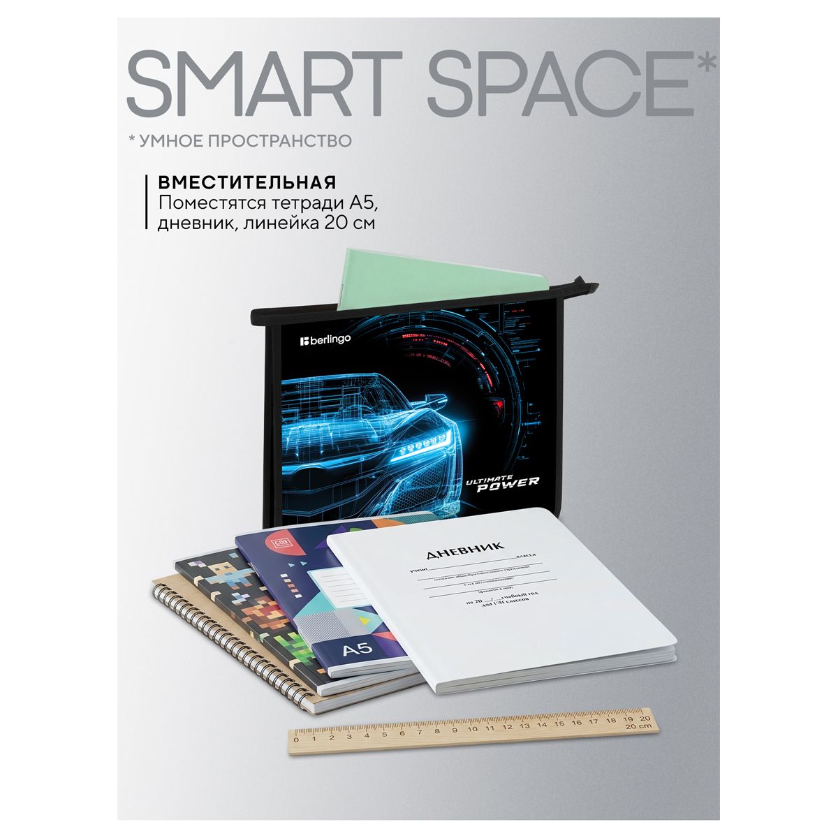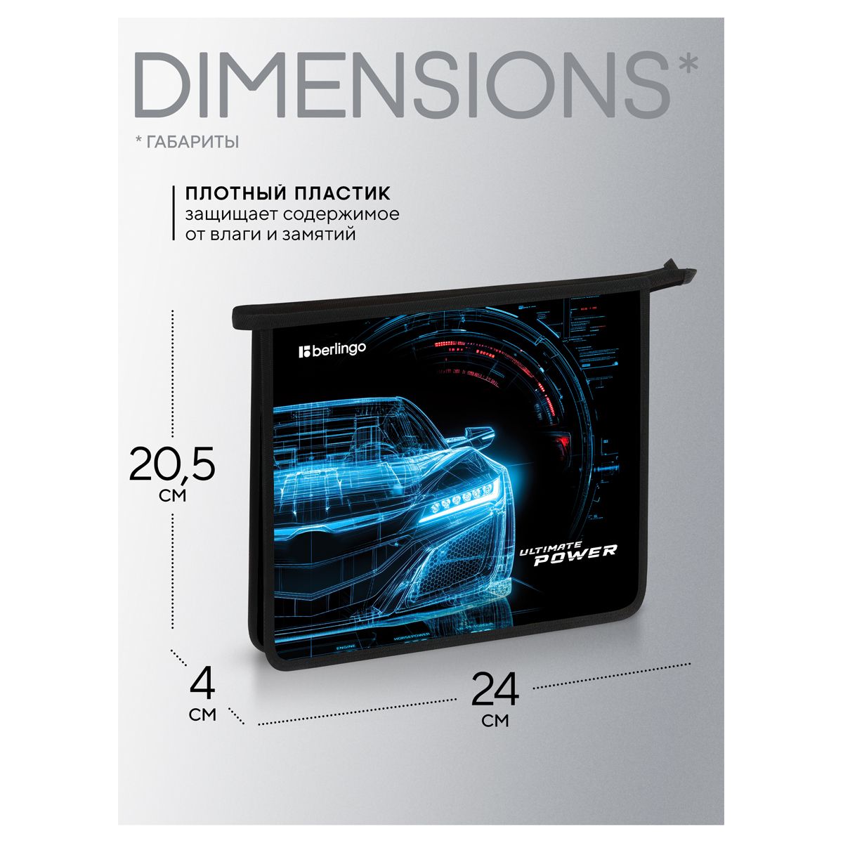 Папка для тетрадей 1 отделение, А5 Berlingo "Ultimate power", 240*205*40мм, пластик, на молнии