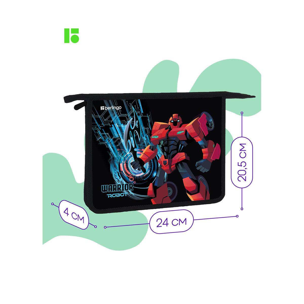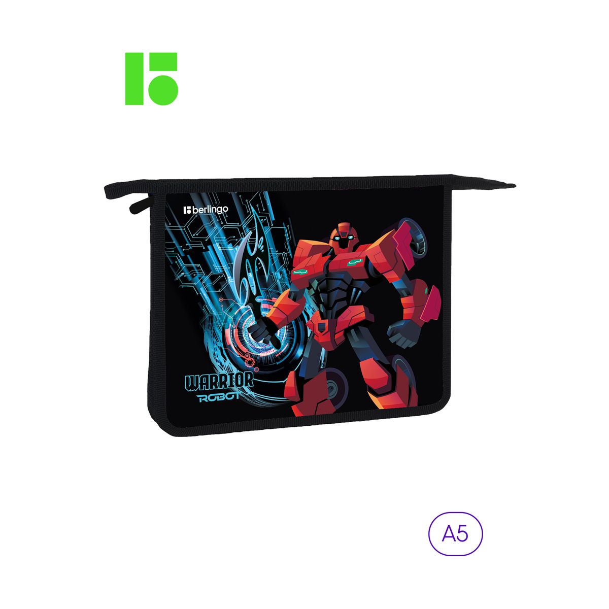 Папка для тетрадей 1 отделение, А5 Berlingo "Warrior Robot", 240*205*40мм, пластик, на молнии