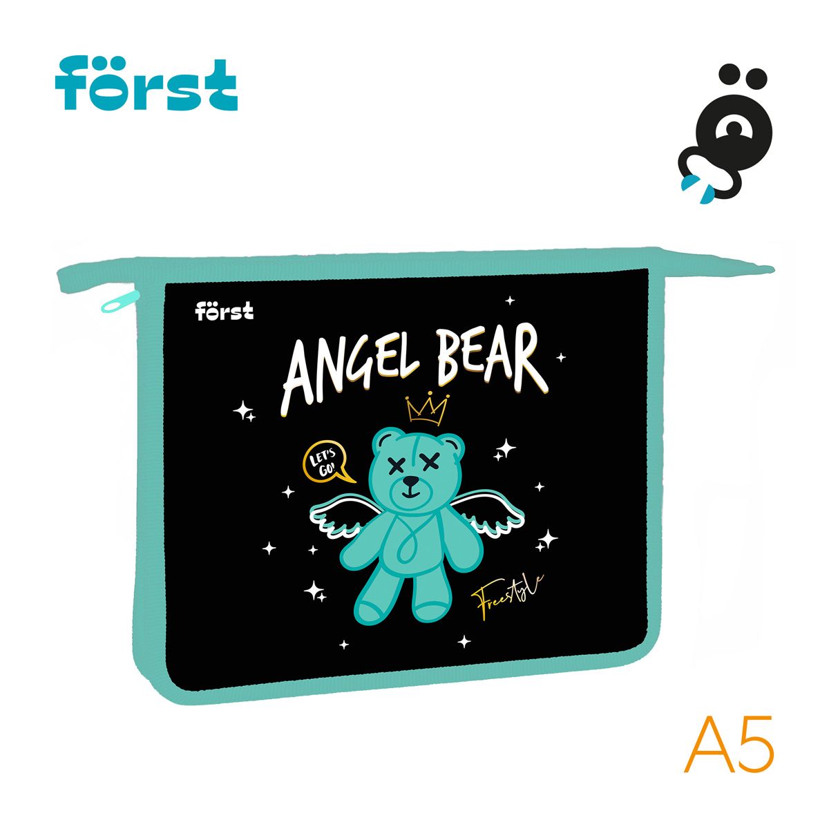 Папка для тетрадей 1 отделение, А5 Först "Angel bear", 240*205*40мм, пластик, на молнии
