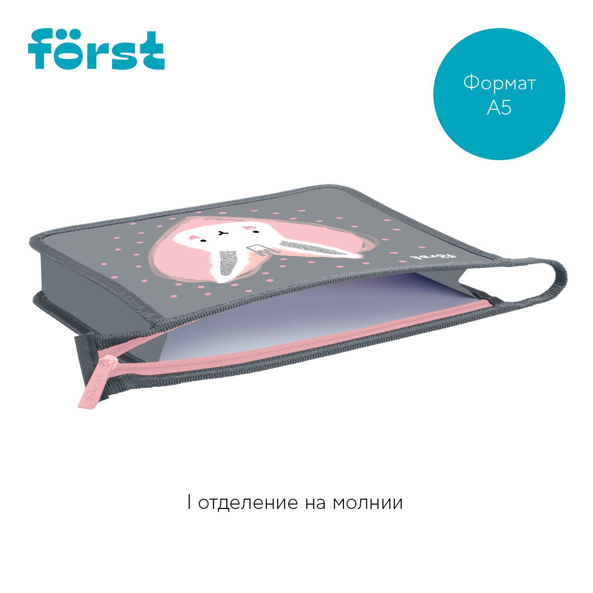Папка для тетрадей 1 отделение, А5 Först "Little Friend" , 240*205*40 мм, пластик, на молнии