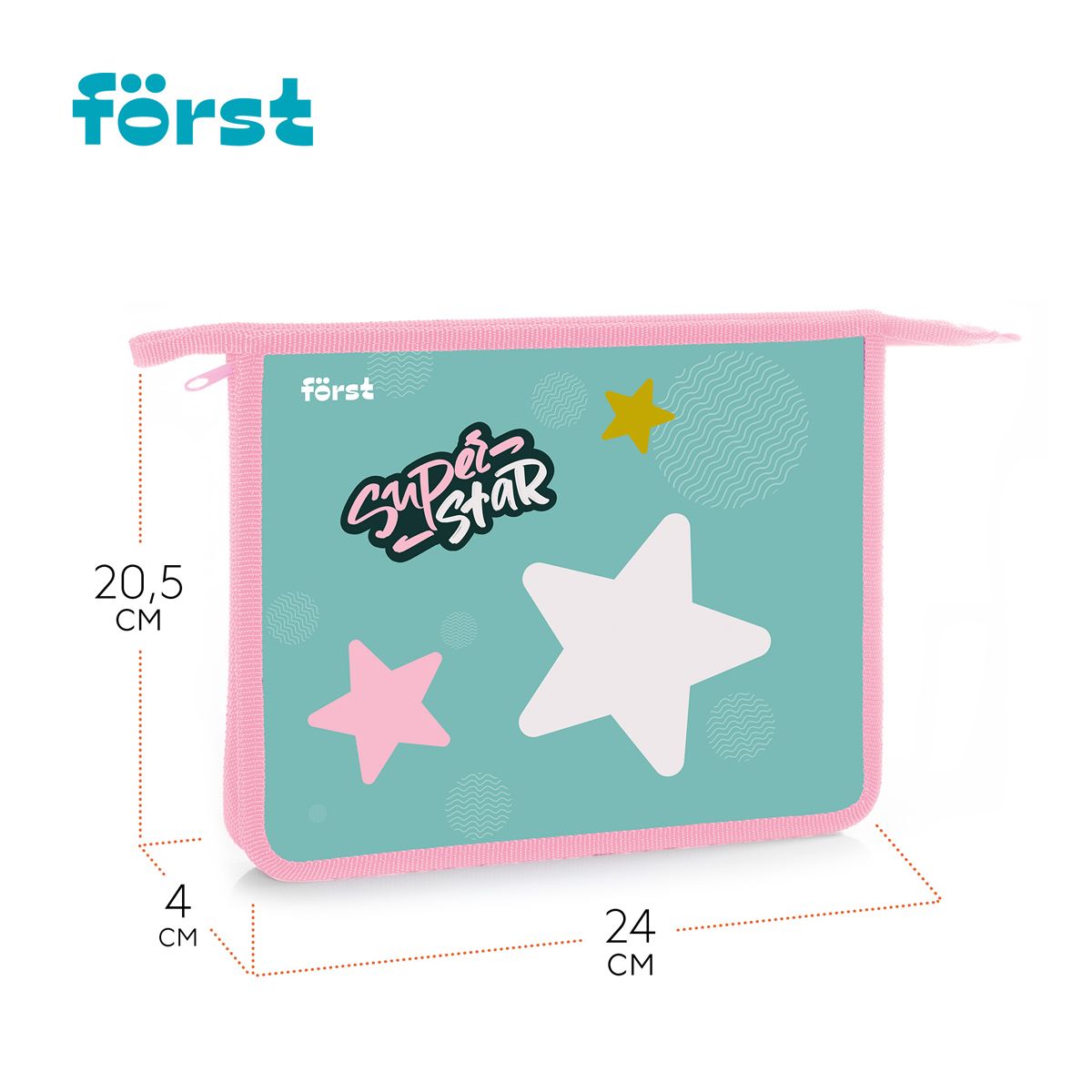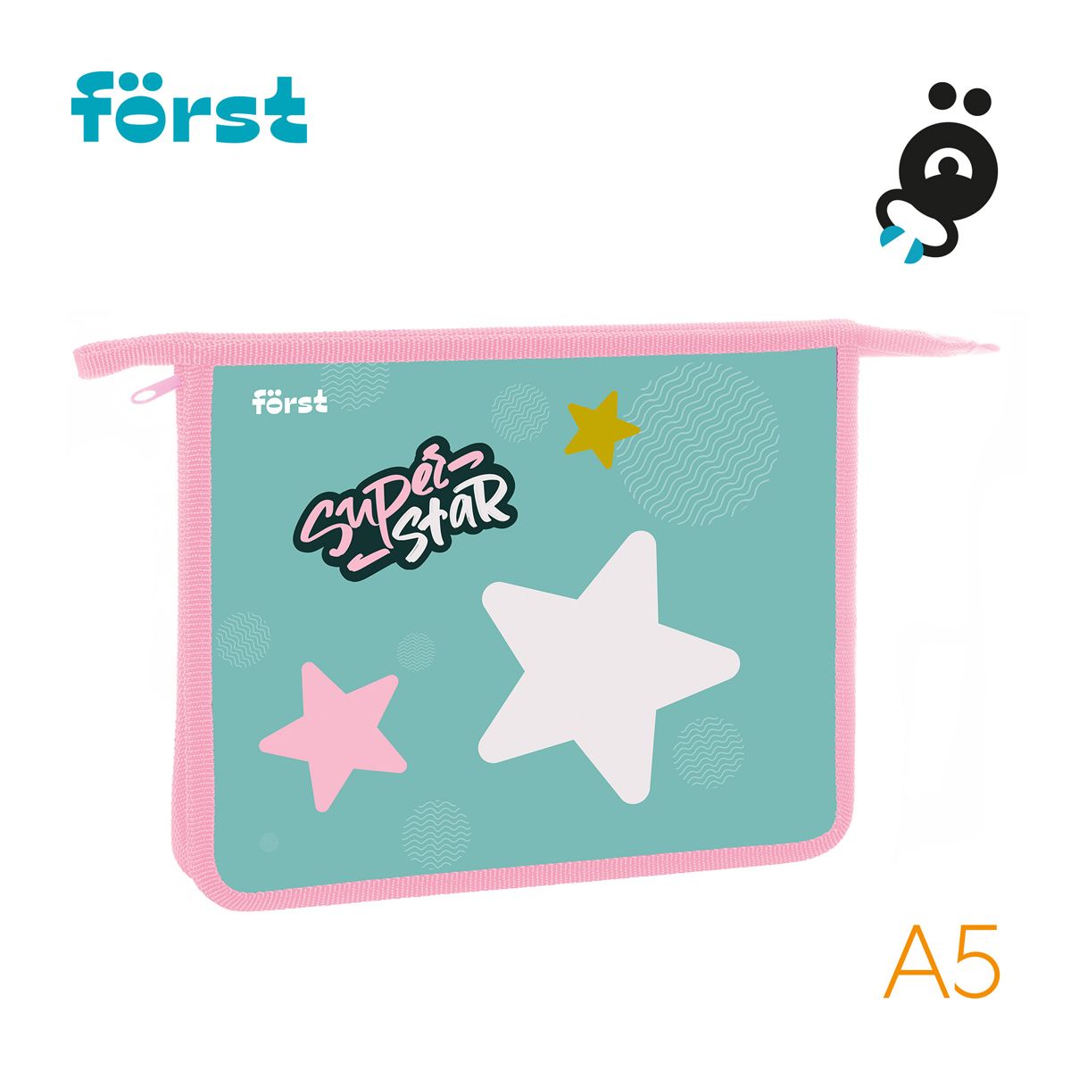 Папка для тетрадей 1 отделение, А5 Först "Super star", 240*205*40мм, пластик, на молнии