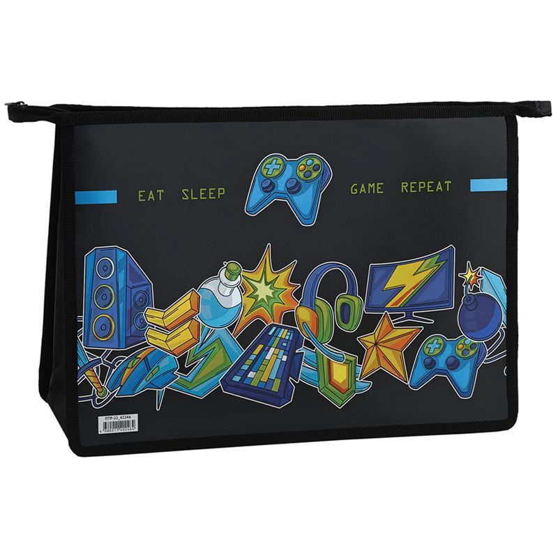Папка для тетрадей 2 отделения А4 ArtSpace "Gamer", пластик, фольга, на молнии