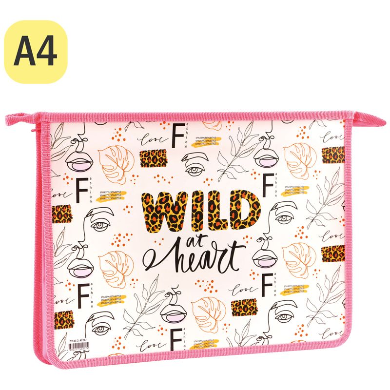 Папка для тетрадей 2 отделения А4 ArtSpace "Wild at heart", пластик, на молнии