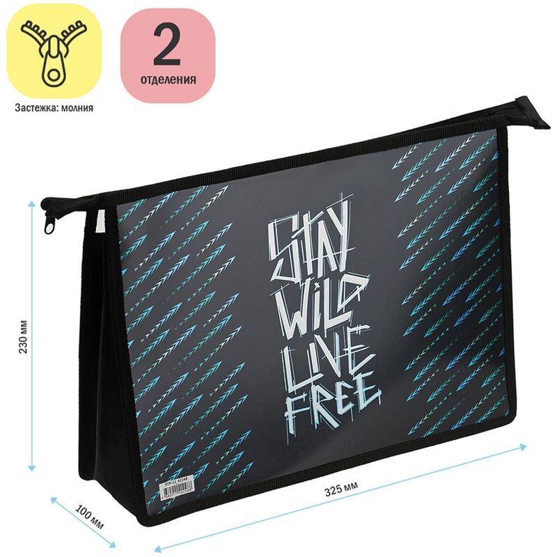 Папка для тетрадей 2 отделения А4 ArtSpace "Wild", пластик, фольга, на молнии