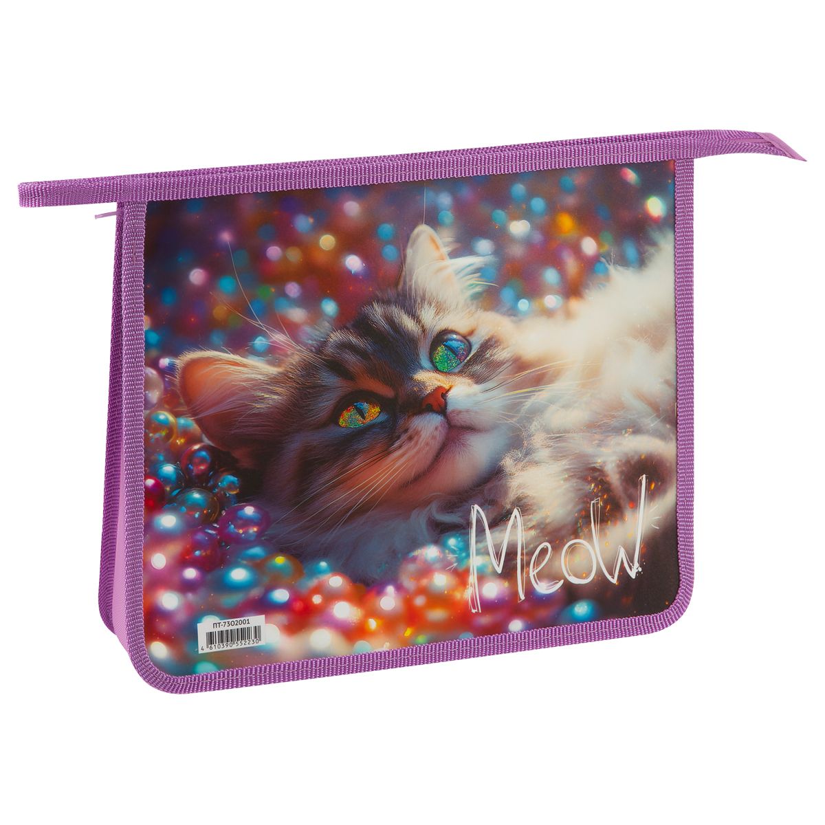 Папка для тетрадей 2 отделения, ArtSpace "Striped Cat", А5, пластик, на молнии