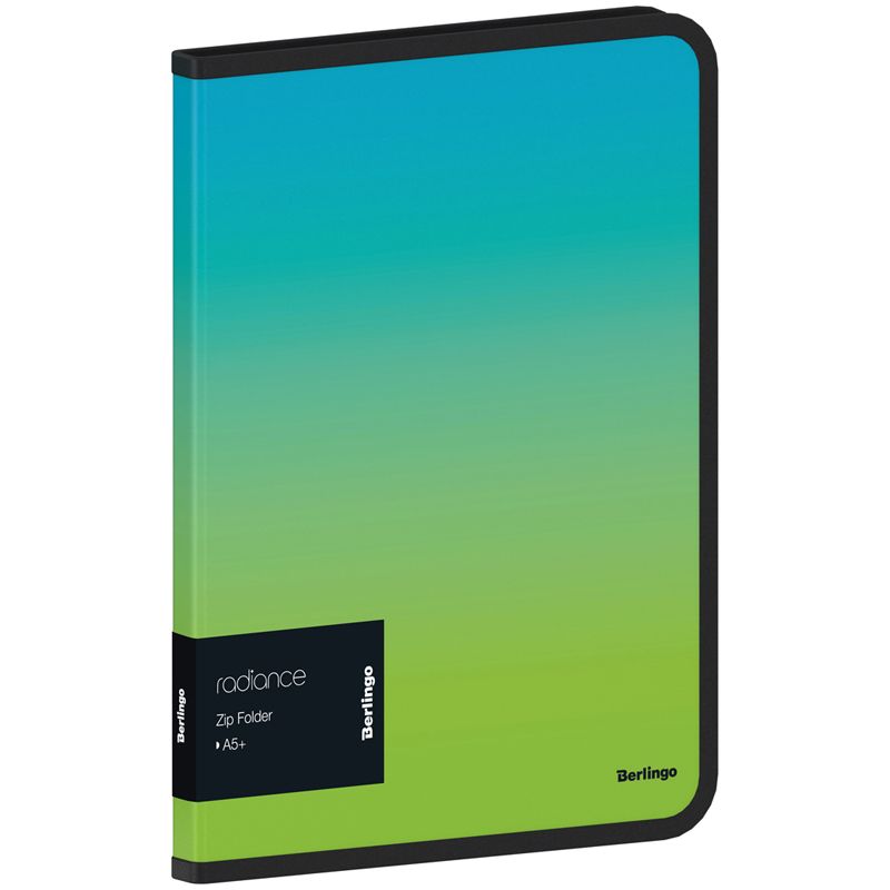 Папка на молнии Berlingo "Radiance" А5+, 600мкм, голубой/зеленый градиент, с рисунком