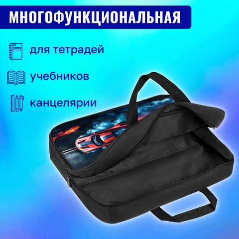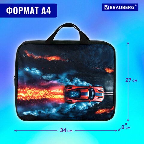 Папка на молнии с ручками BRAUBERG А4, 1 отделение, полиэстер, 80 мм, Foggy car, 273305