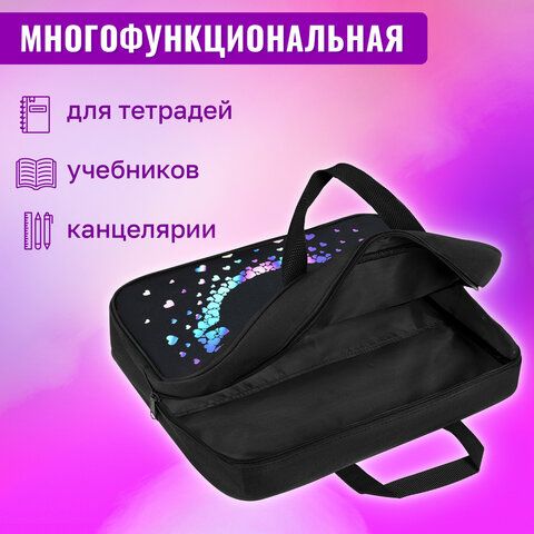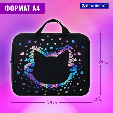 Папка на молнии с ручками BRAUBERG А4, 1 отделение, полиэстер, 80 мм, Pretty face, 273307