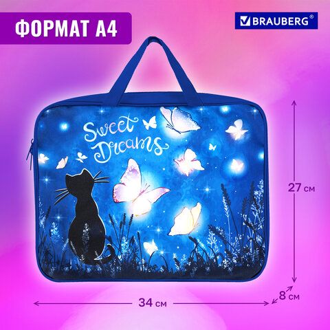 Папка на молнии с ручками BRAUBERG А4, 1 отделение, полиэстер, 80 мм, "Sweet dreams", 270959