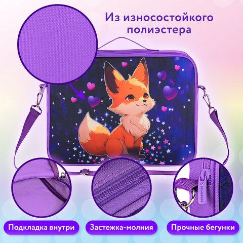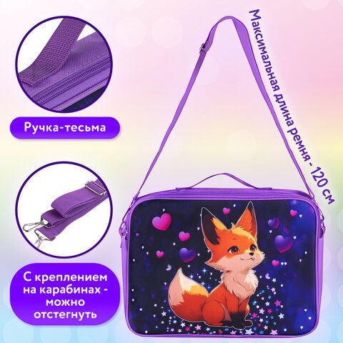 Папка на молнии с ручками BRAUBERG KIDS А4, 1 отделение, регулируемый плечевой ремень, 60 мм, "Fairy fox", 273317