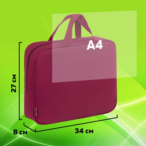Папка на молнии с ручками STAFF EVERYDAY А4, 1 отделение, полиэстер, 80 мм, бордовый, 272187