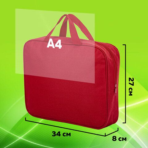 Папка на молнии с ручками STAFF EVERYDAY, А4, ширина 80 мм, полиэстер, красная, 270739