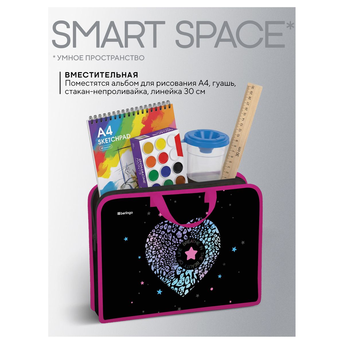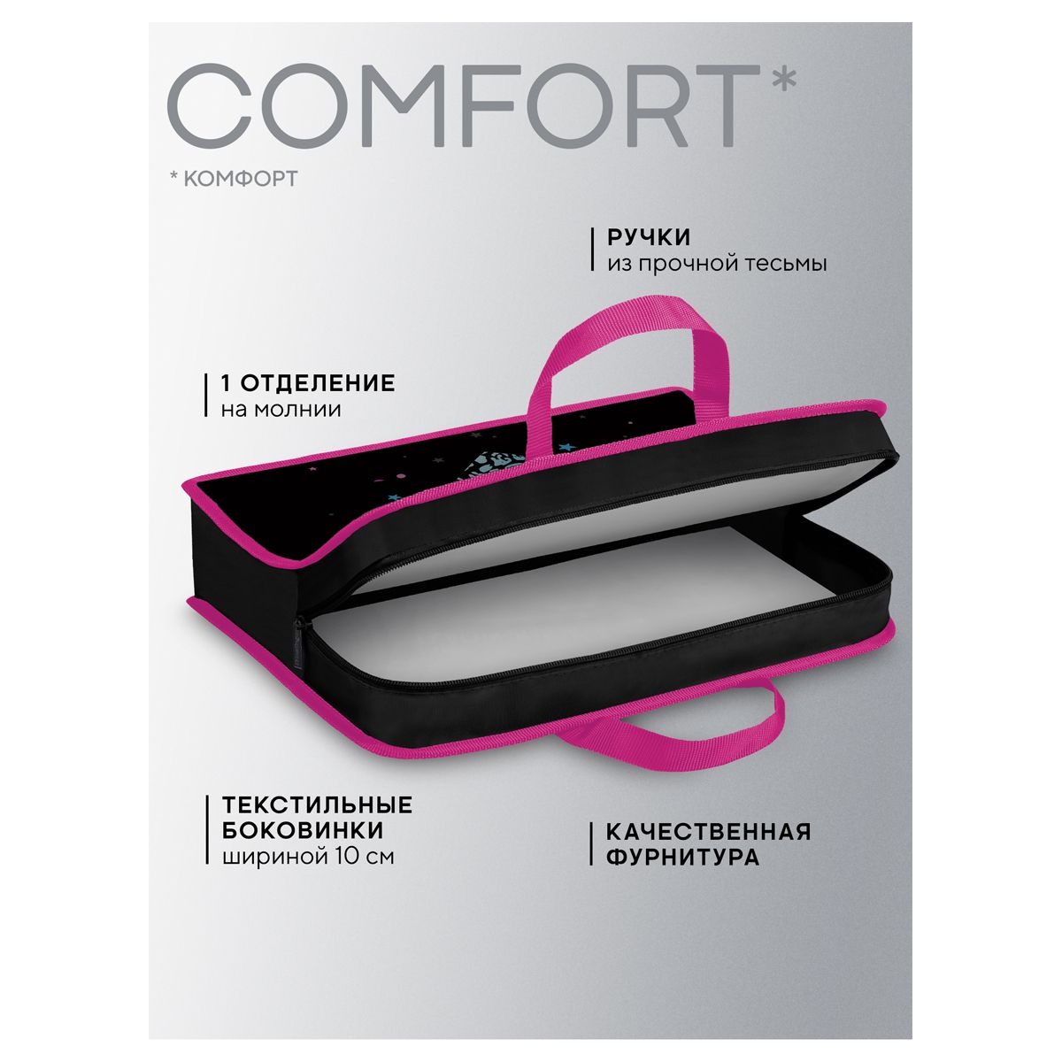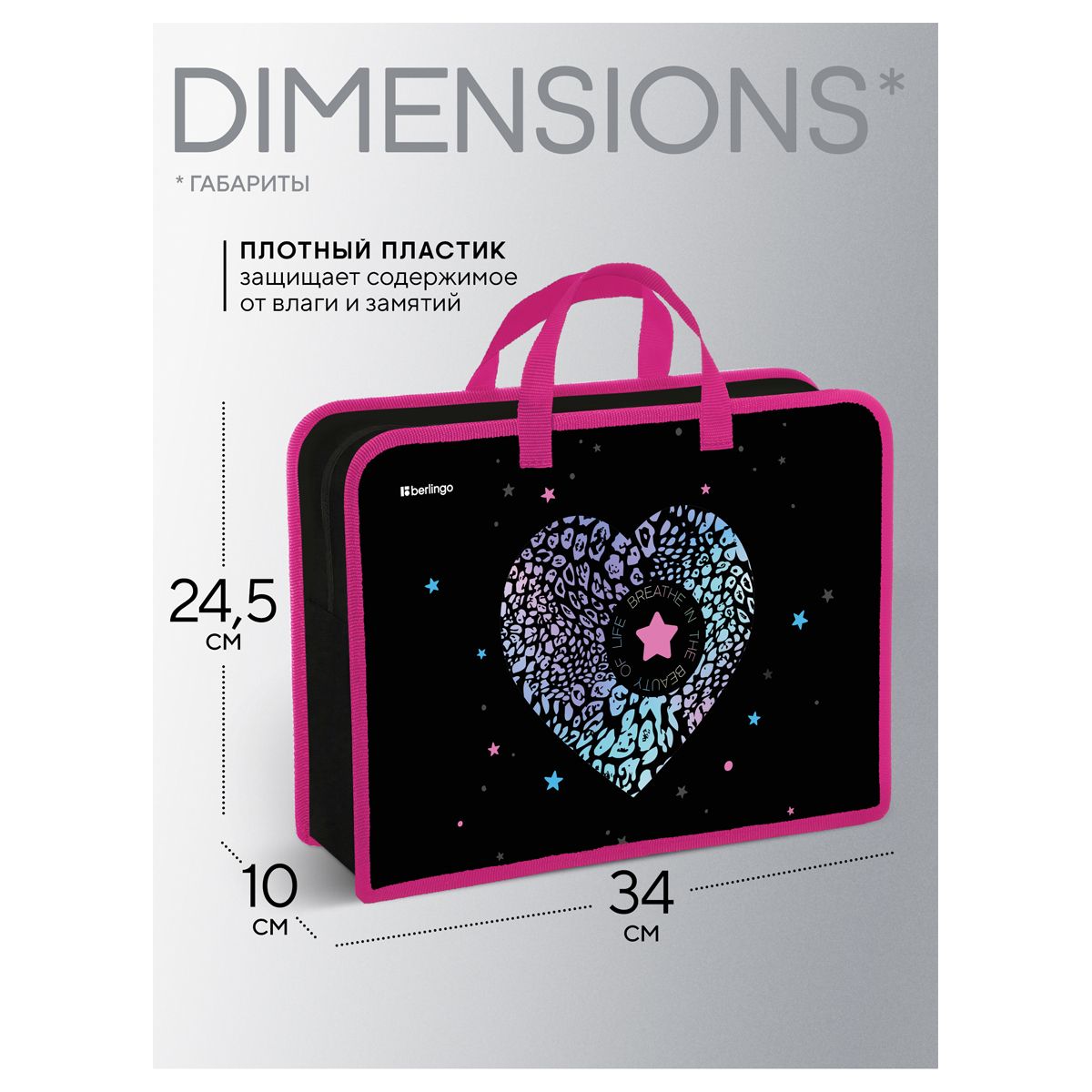 Папка с ручками 1 отделение, А4 Berlingo "Beauty", 340*245*100мм, пластик, на молнии