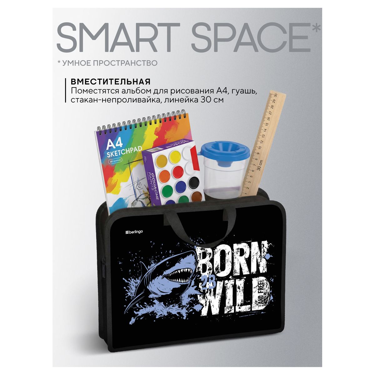 Папка с ручками 1 отделение, А4 Berlingo "Born to be WILD", 340*245*100мм, пластик, на молнии
