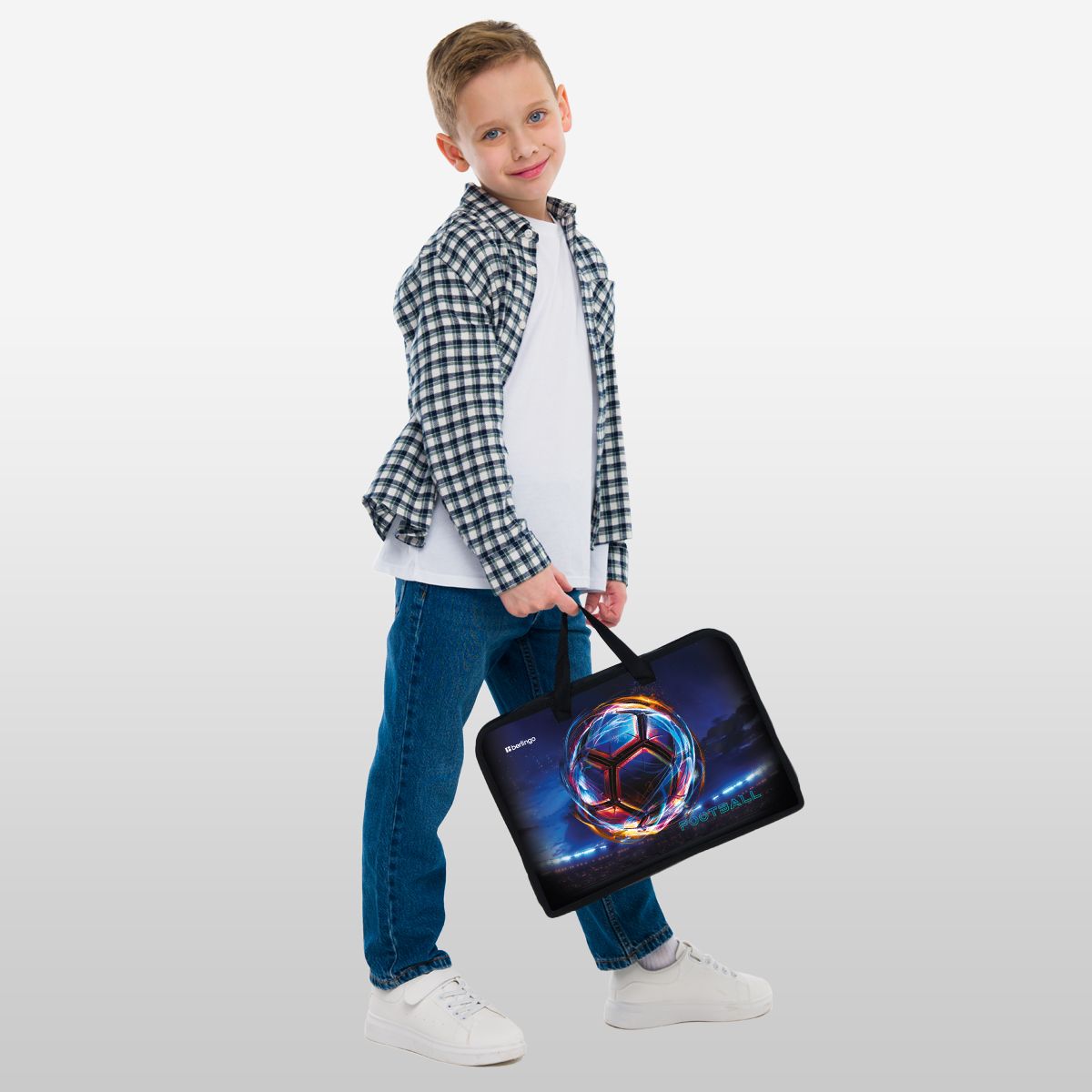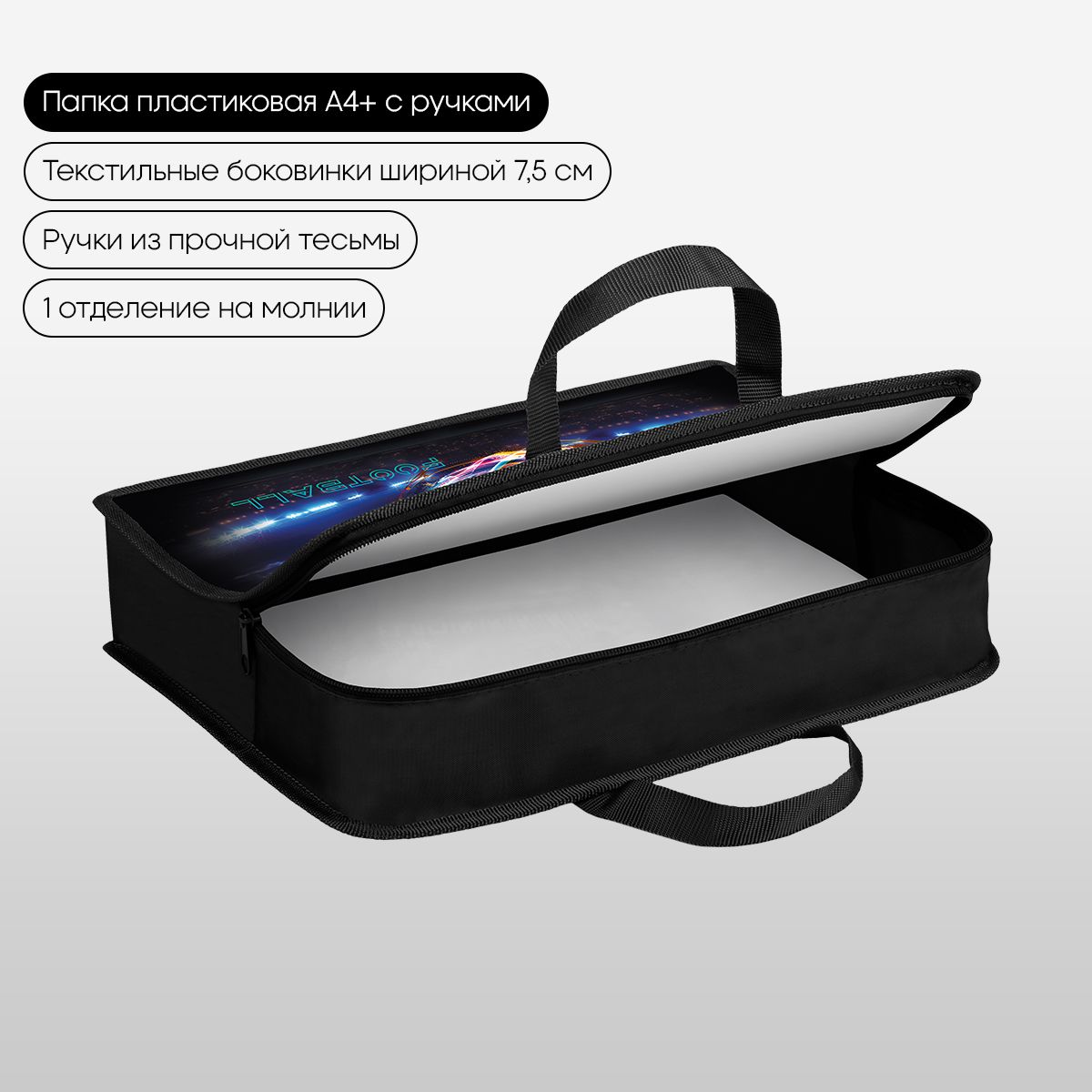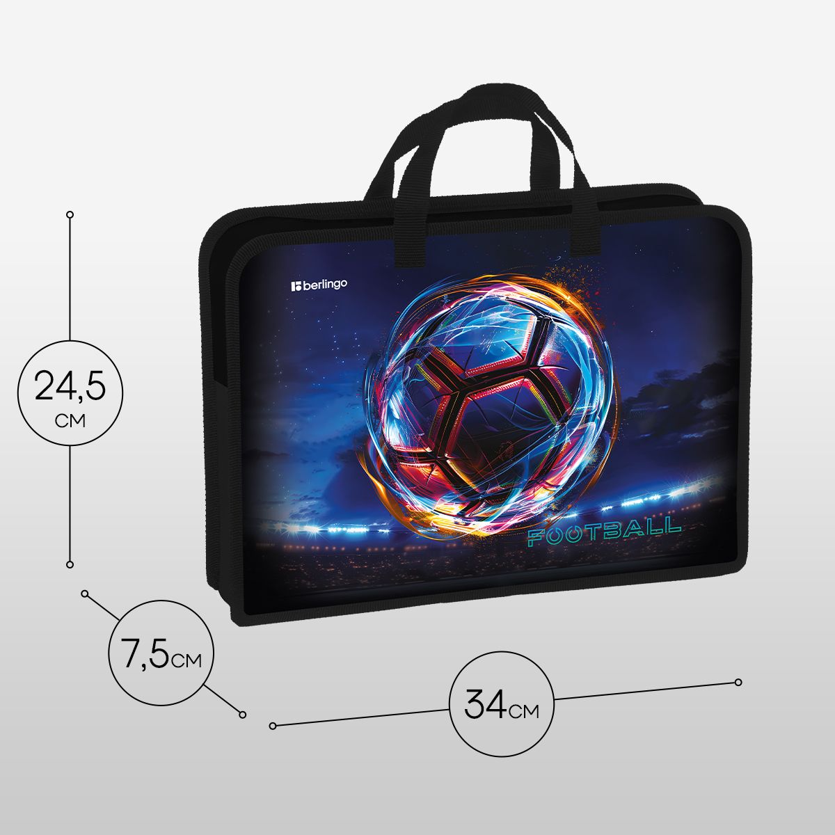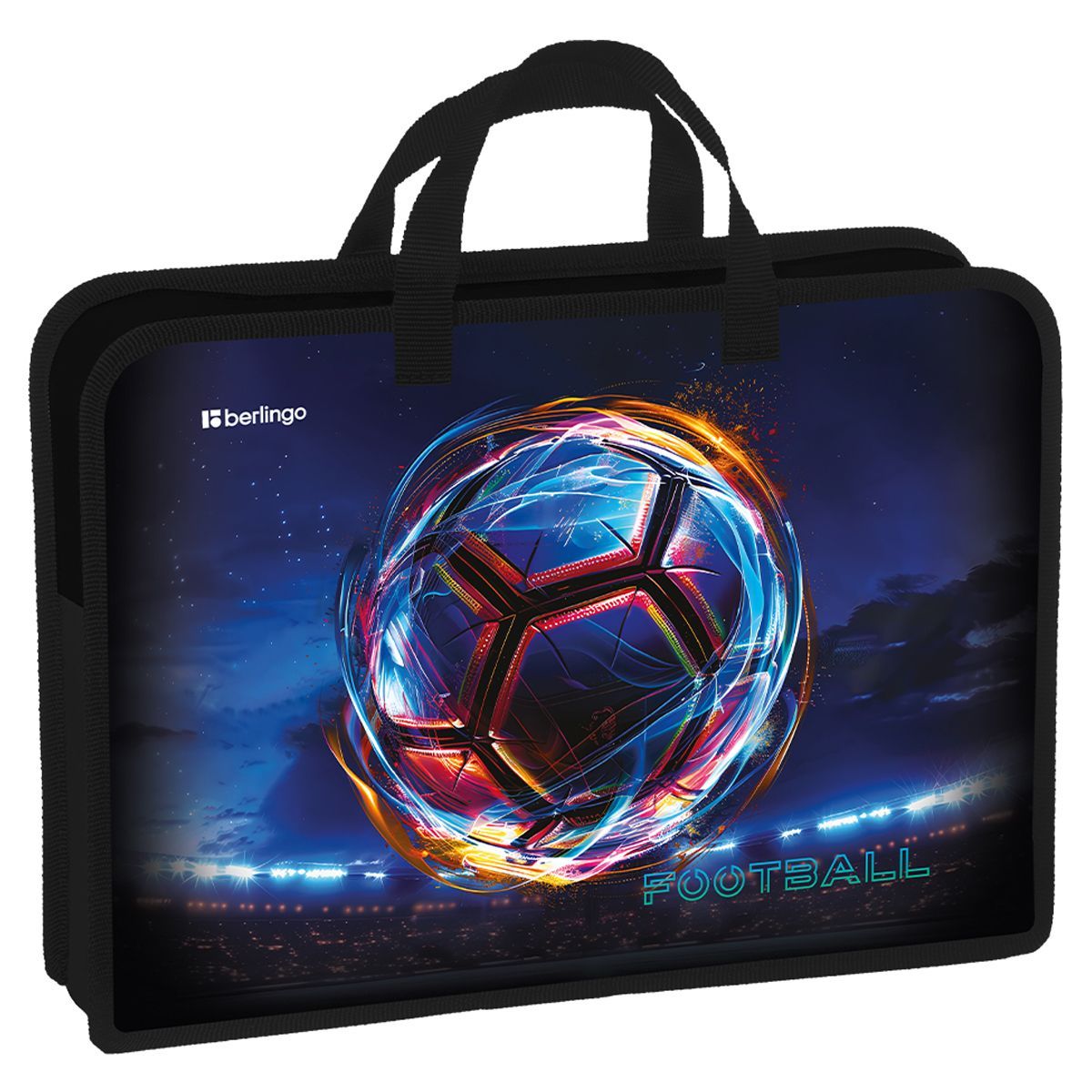 Папка с ручками 1 отделение, А4 Berlingo "Cyber Football", 340*245*75мм, пластик, на молнии