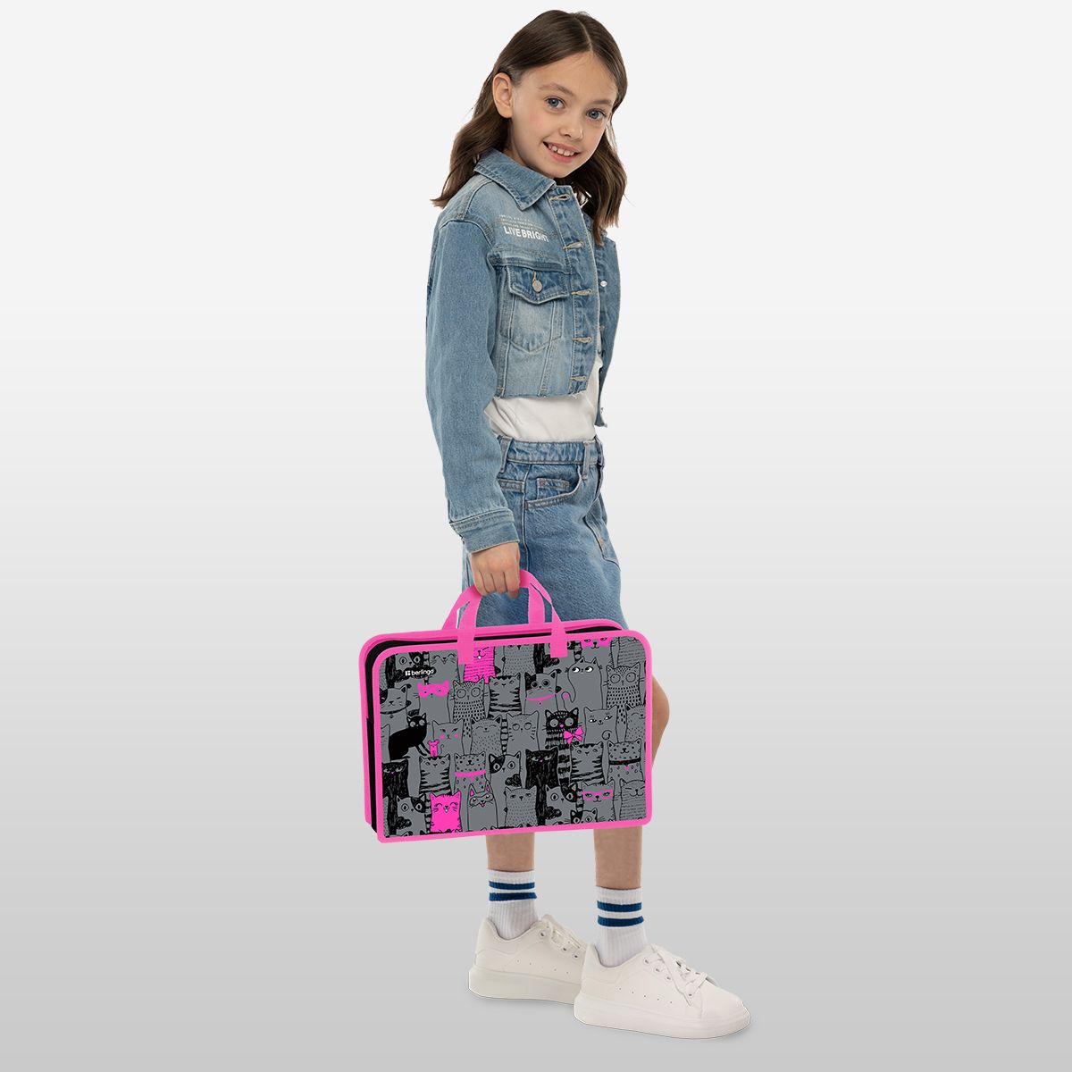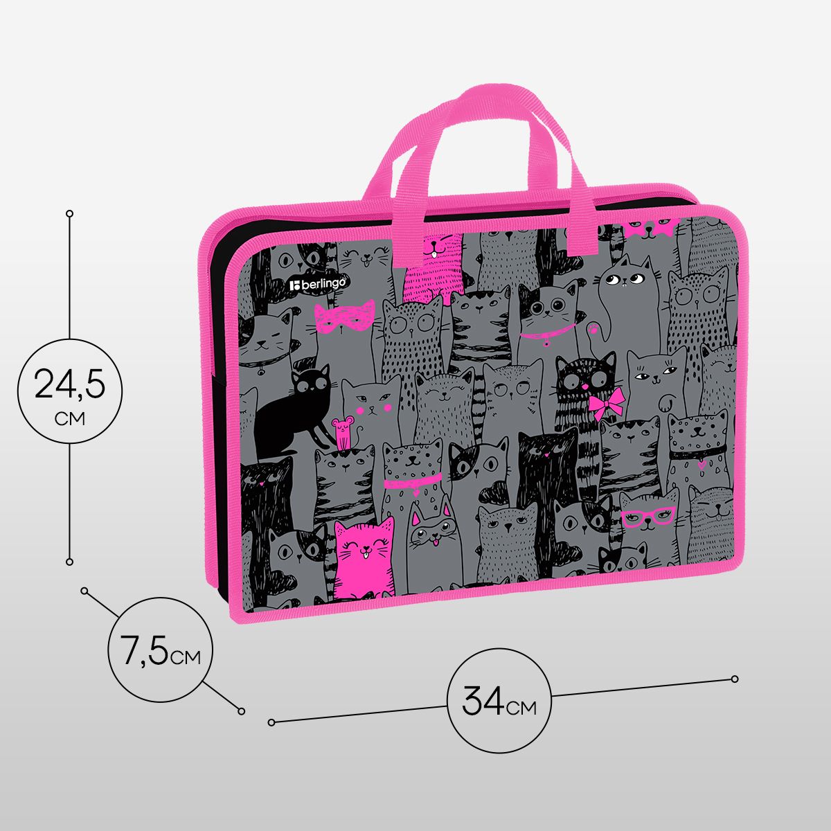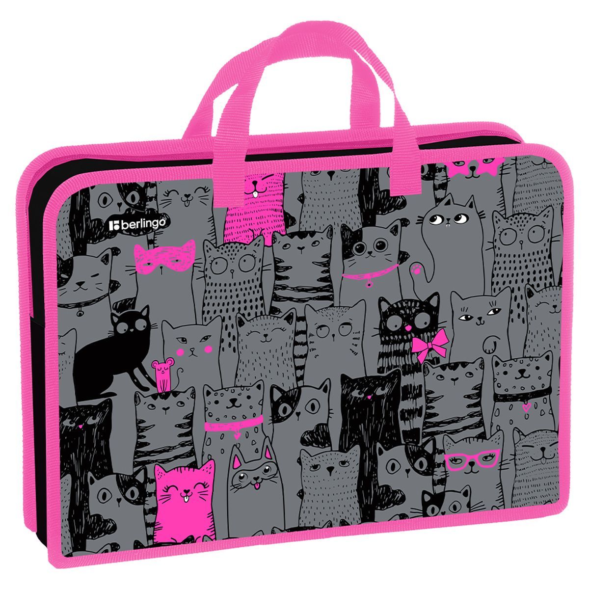 Папка с ручками 1 отделение, А4 Berlingo "Happy Cats", 340*245*75мм, пластик, на молнии