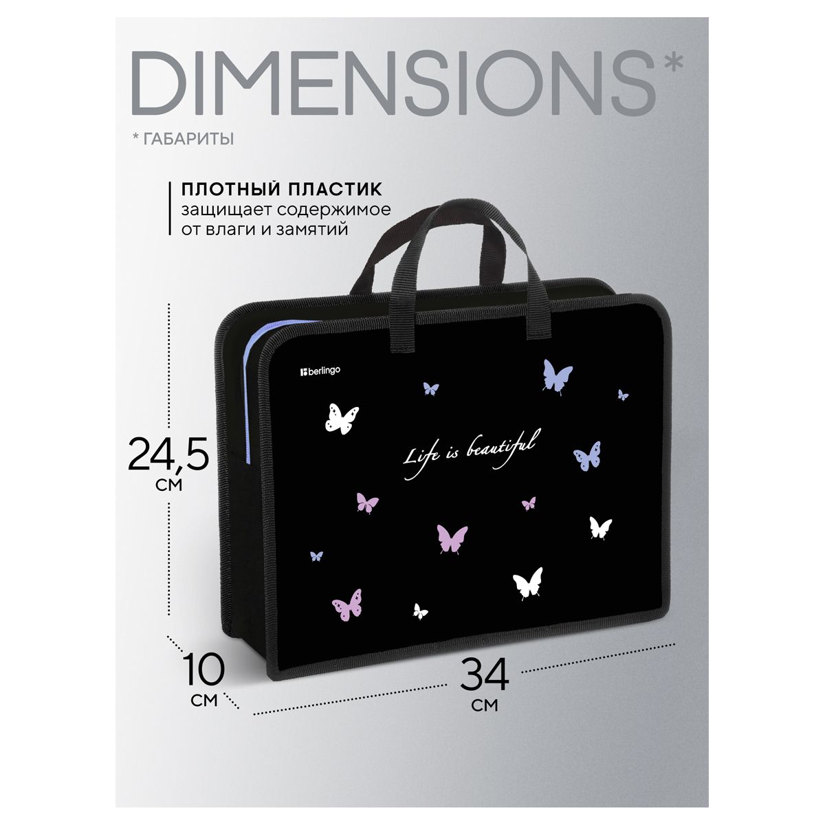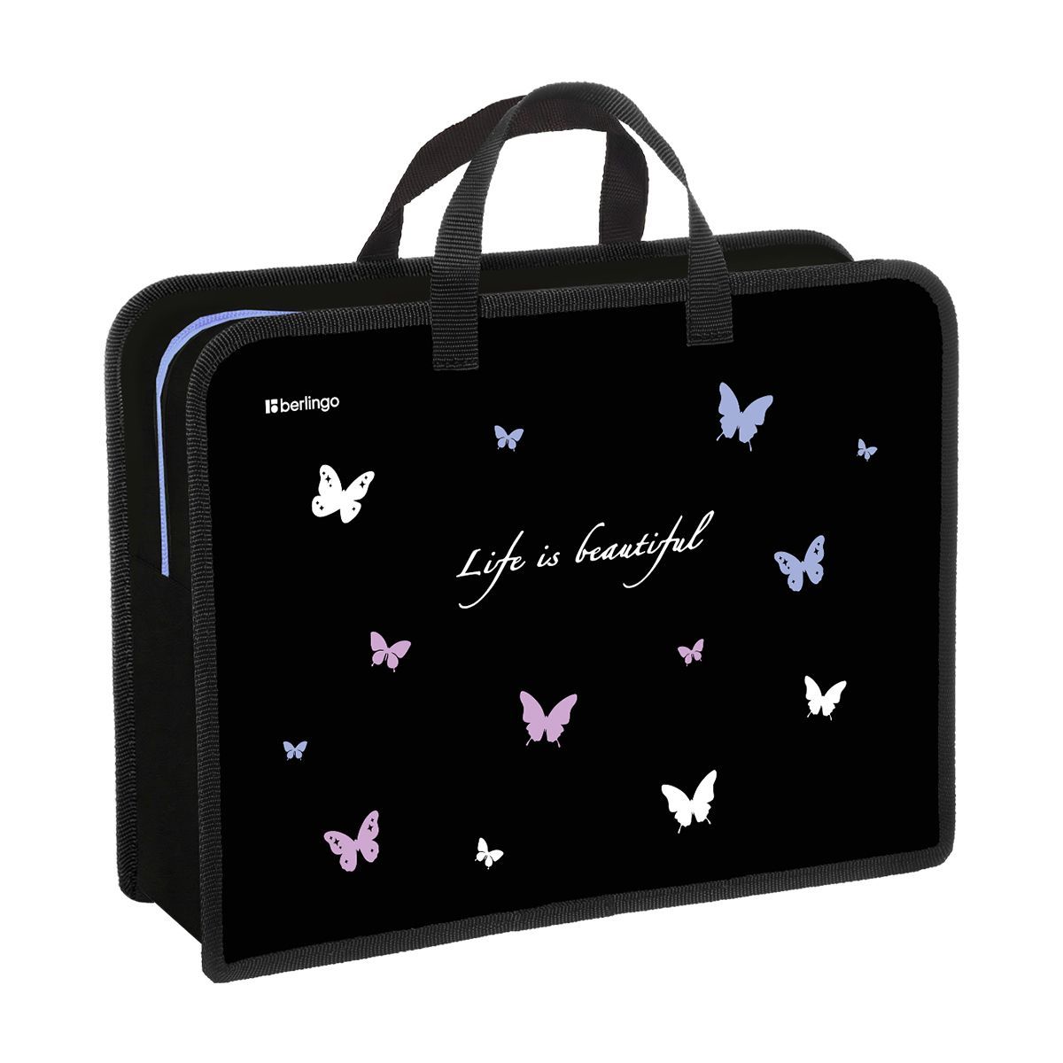 Папка с ручками 1 отделение, А4 Berlingo "Life is Beautiful", 340*245*100мм, пластик, на молнии