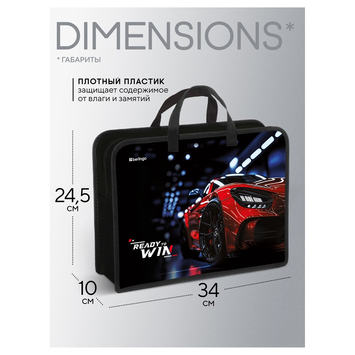 Папка с ручками 1 отделение, А4 Berlingo "Ready to win", 340*245*100мм, пластик, на молнии